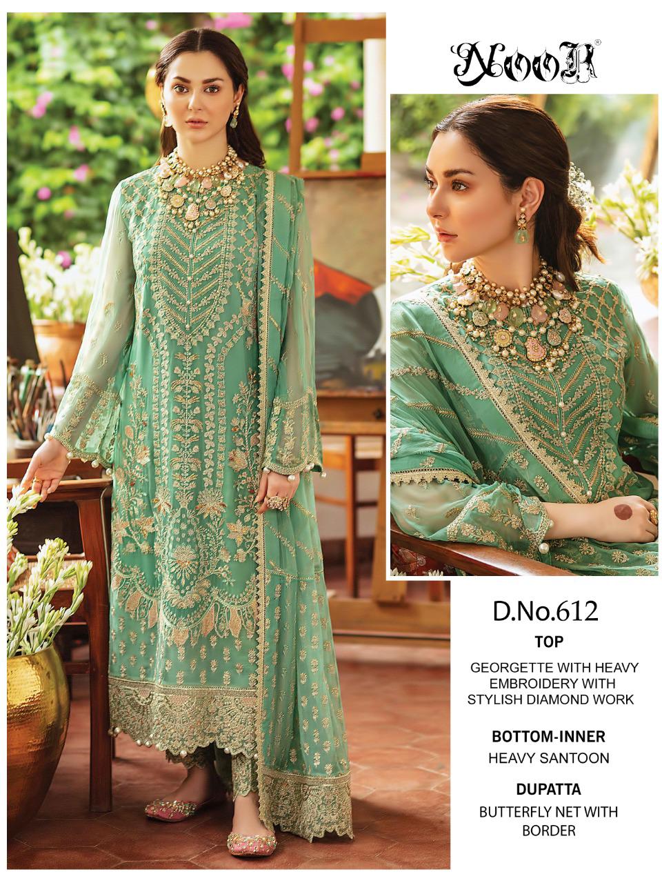 Noor Presents Afrozeh 612 - 614 Series Georgette With Heavy Embroidery With Latkan And Diamond Work Fancy Pakistani Suits Collection