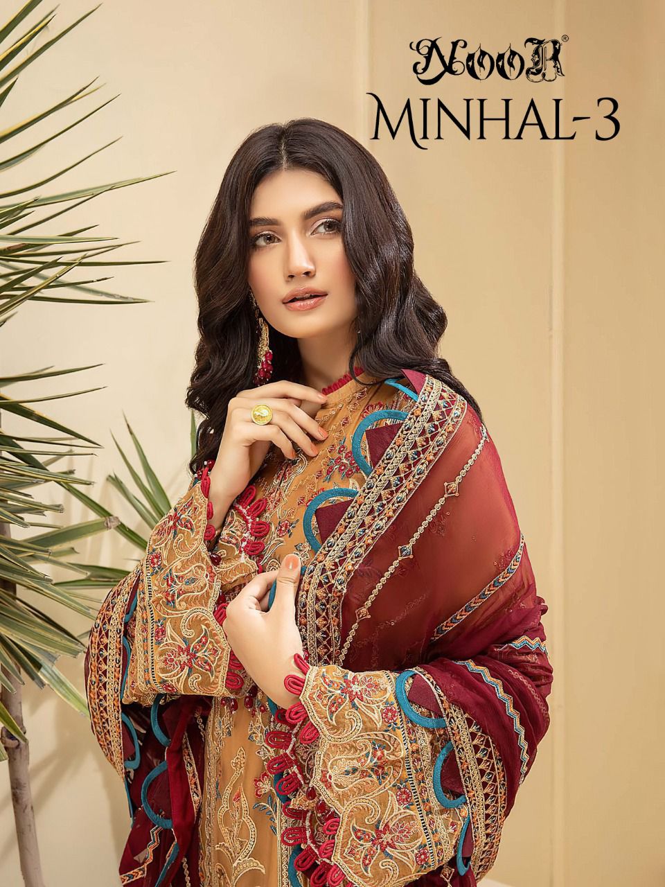 Noor Presents Mihnal 1008-1010 Series Georgette With Heavy Embroidery Fancy Designer Party Wear Pakistani Suits Collection