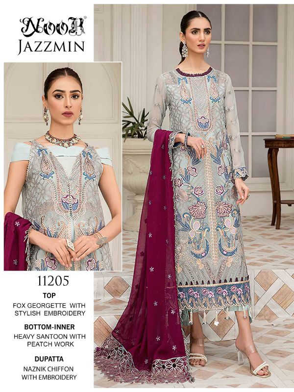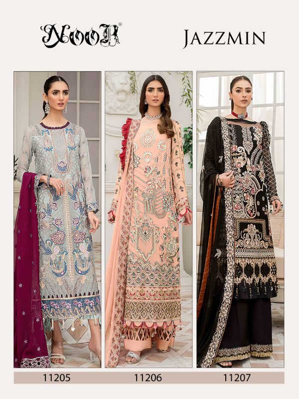 Noor Presents Noor Jazzmin 1205-11207 Series Georgette With Heavy Embroidery Pakistani Suit Collection