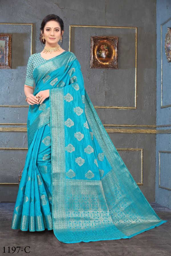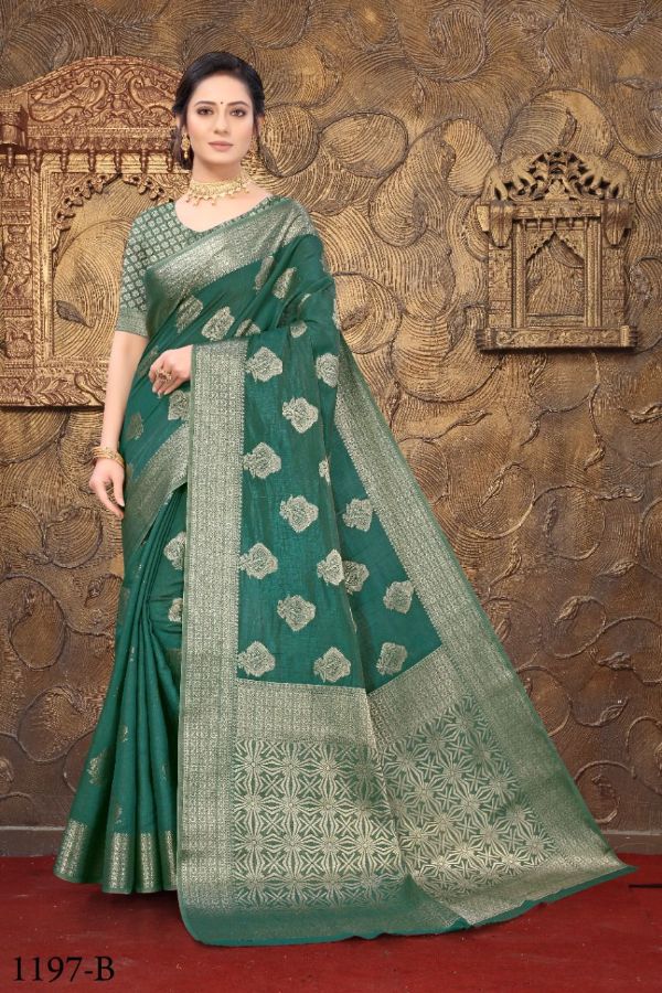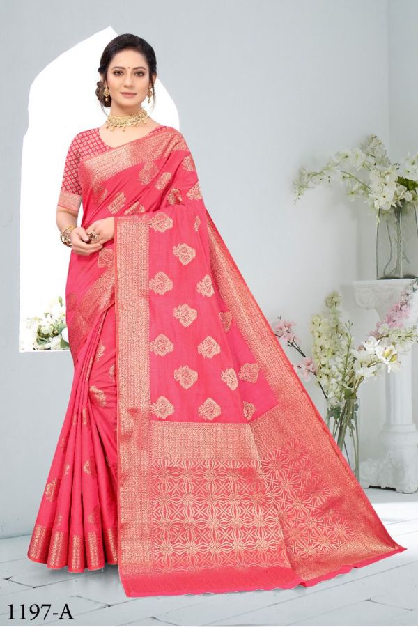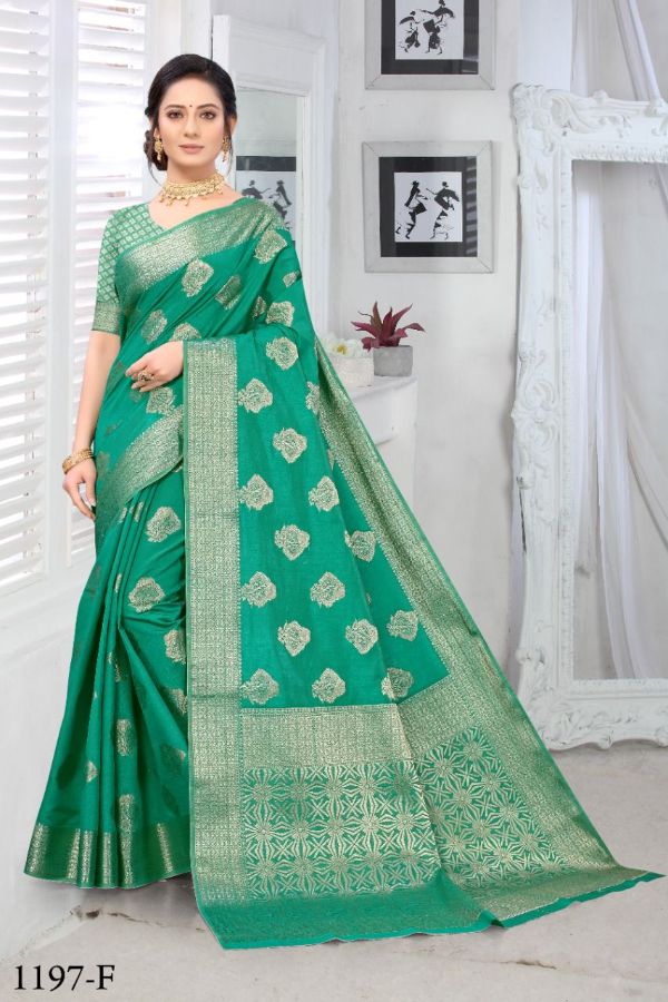 Np Presents 1197 A - 1197 F Series Pure Silk Weaving Saree With Butta Rich Pallu Saree Collection