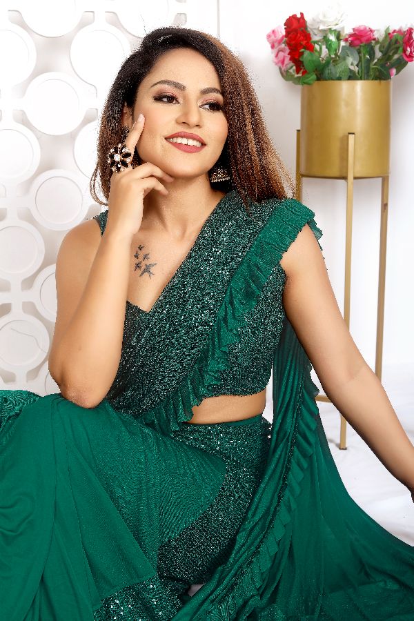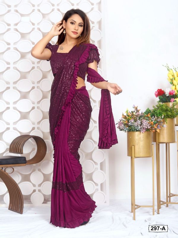 One Minute Ready To Wear Stylish Imported Lycra Silk Saree By Balaji Emporium At Wholesale Price