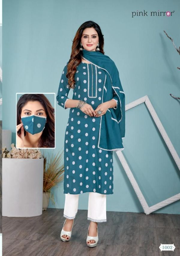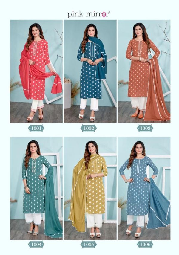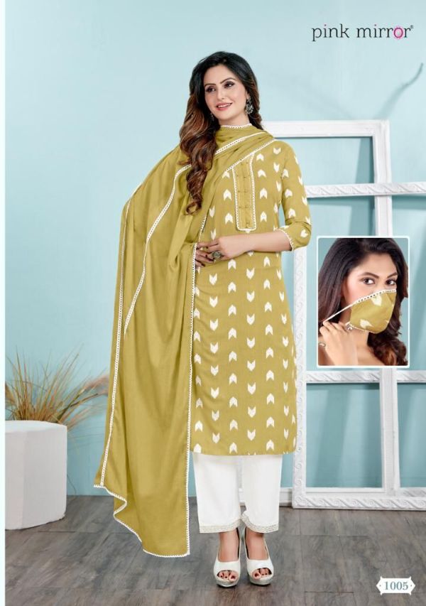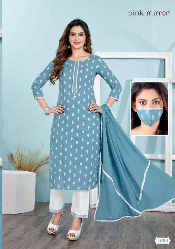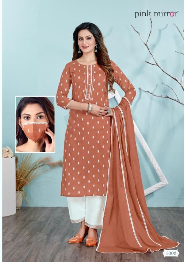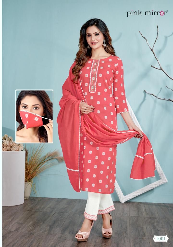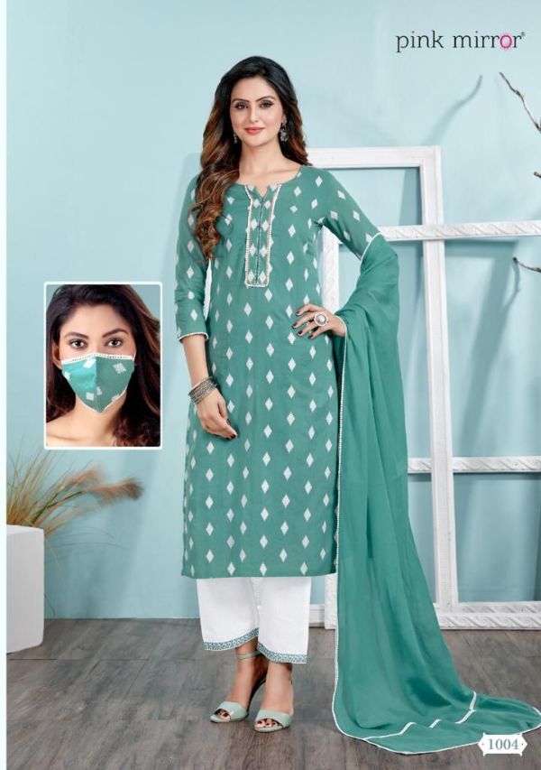 Pink Mirror Presents Essence 1001 - 1006 Series Pure Cotton Jacquard With Hand Work And Pure Cotton Salwar Kameez Collection With Designer Face Mask