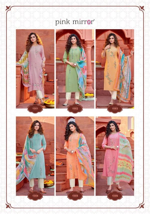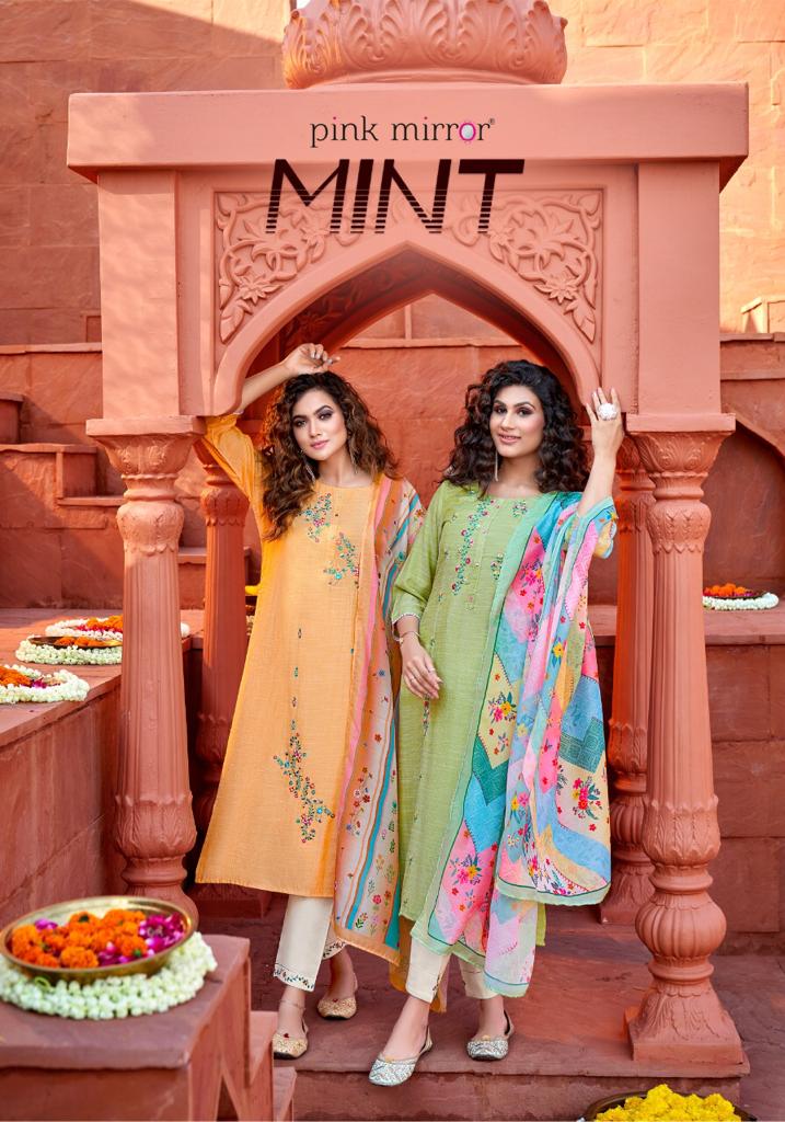 Pink Mirror Presents Mint 1001-1006 Series Viscose With Embroidery Work Salwar Kameez Collection