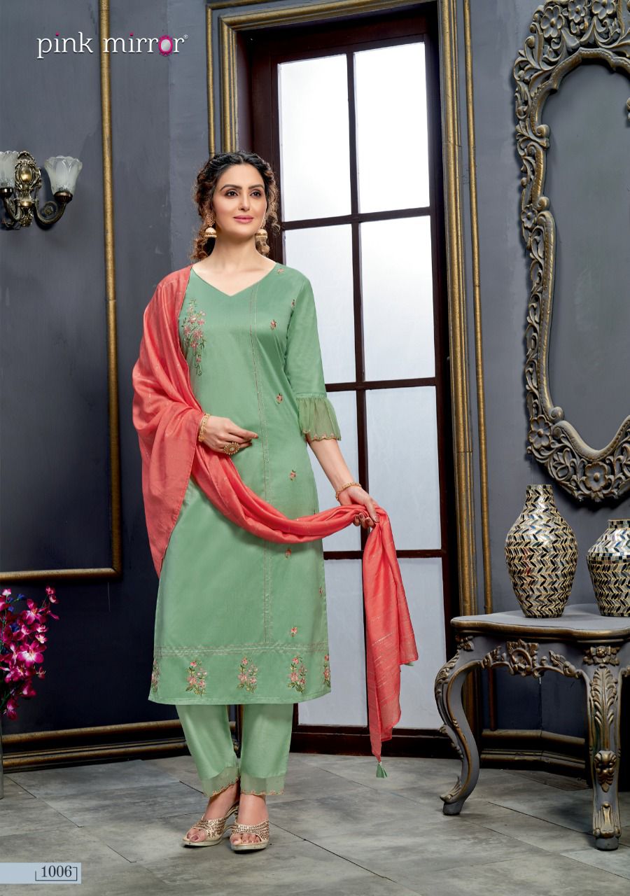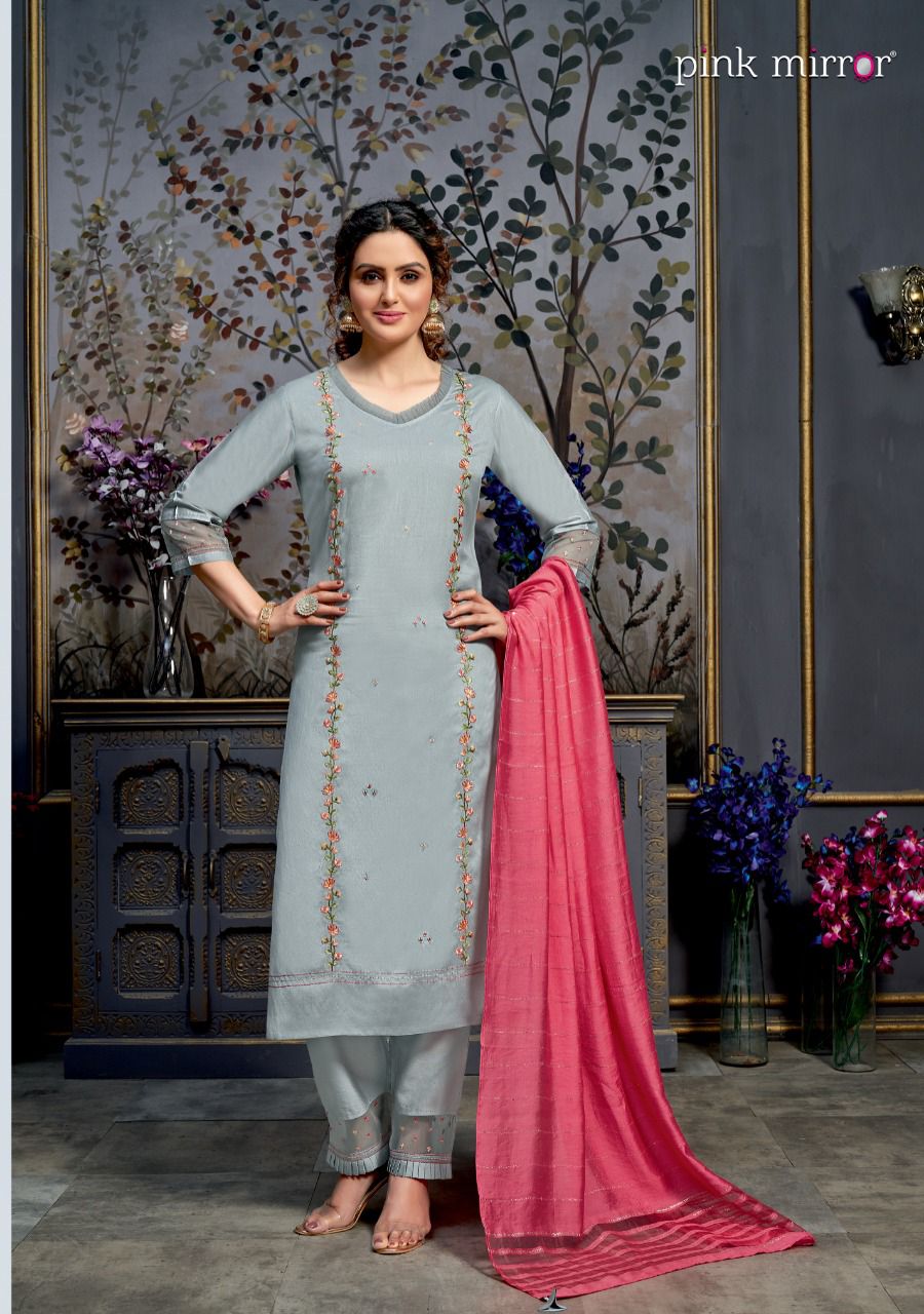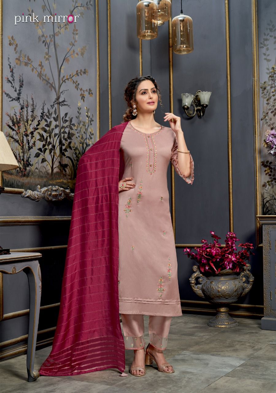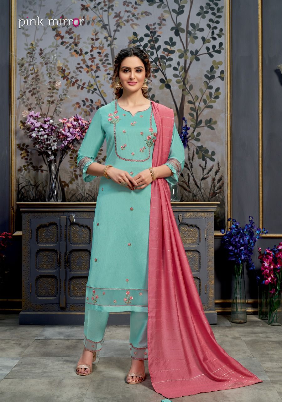Pink Mirror Presents Radiant 1001 - 1006 Series Viscose With Embroidery Work And Value Addition Fancy Event Wear Salwar Kameez Collection