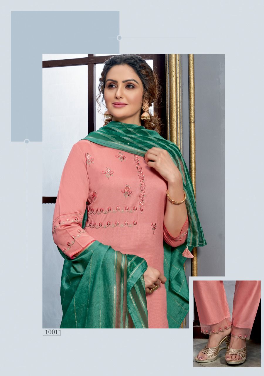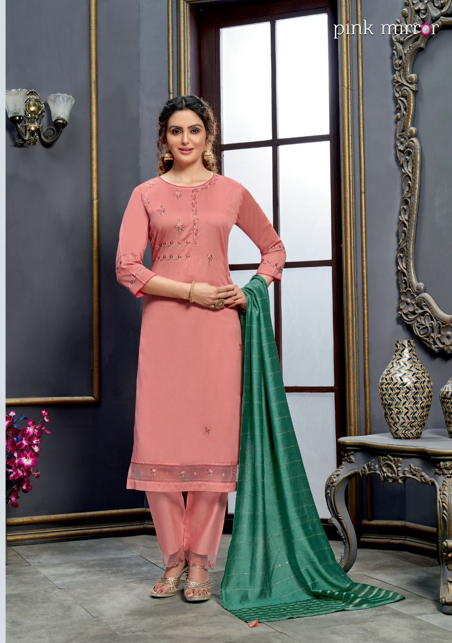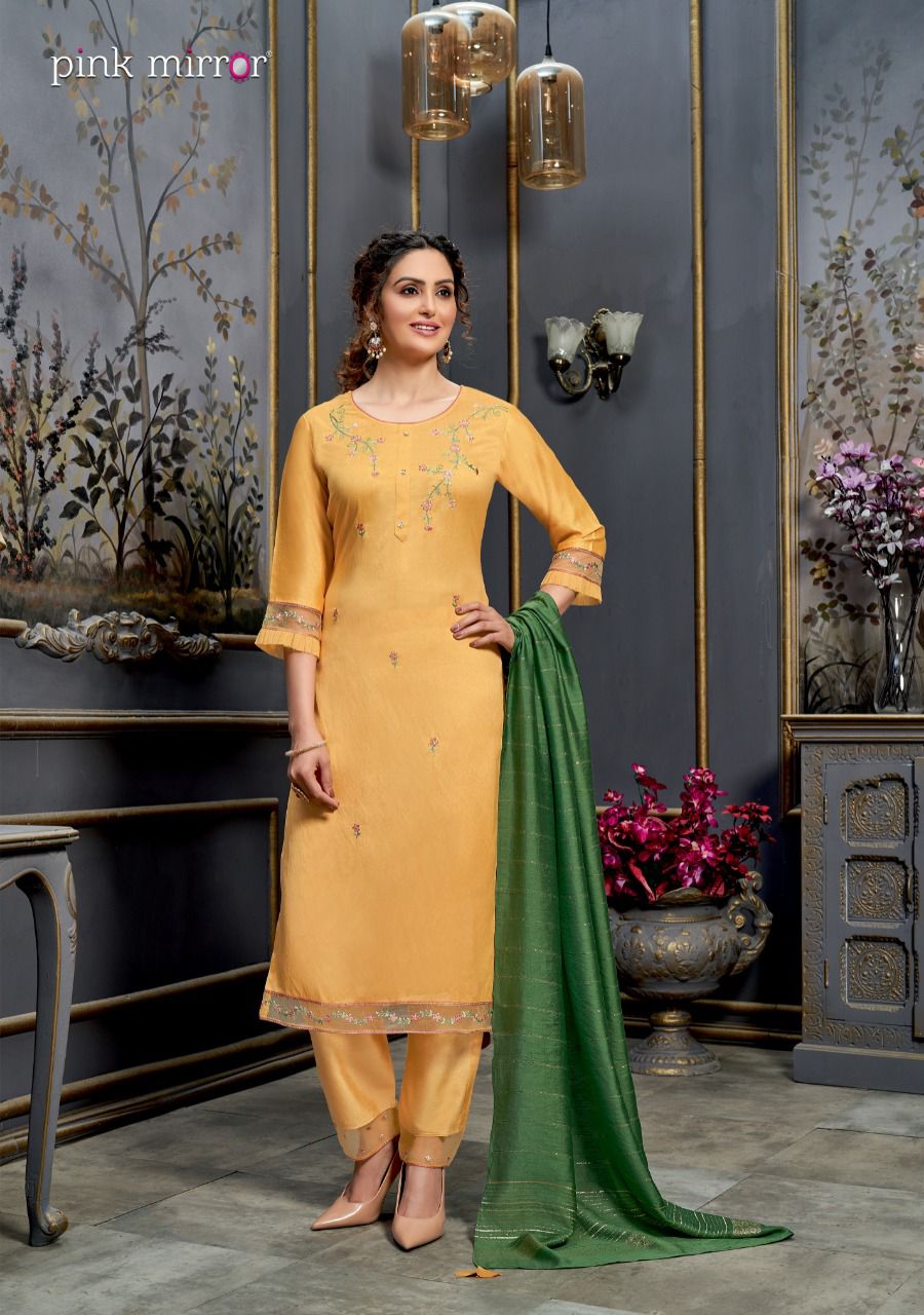 Pink Mirror Presents Radiant 1001 - 1006 Series Viscose With Embroidery Work And Value Addition Fancy Event Wear Salwar Kameez Collection