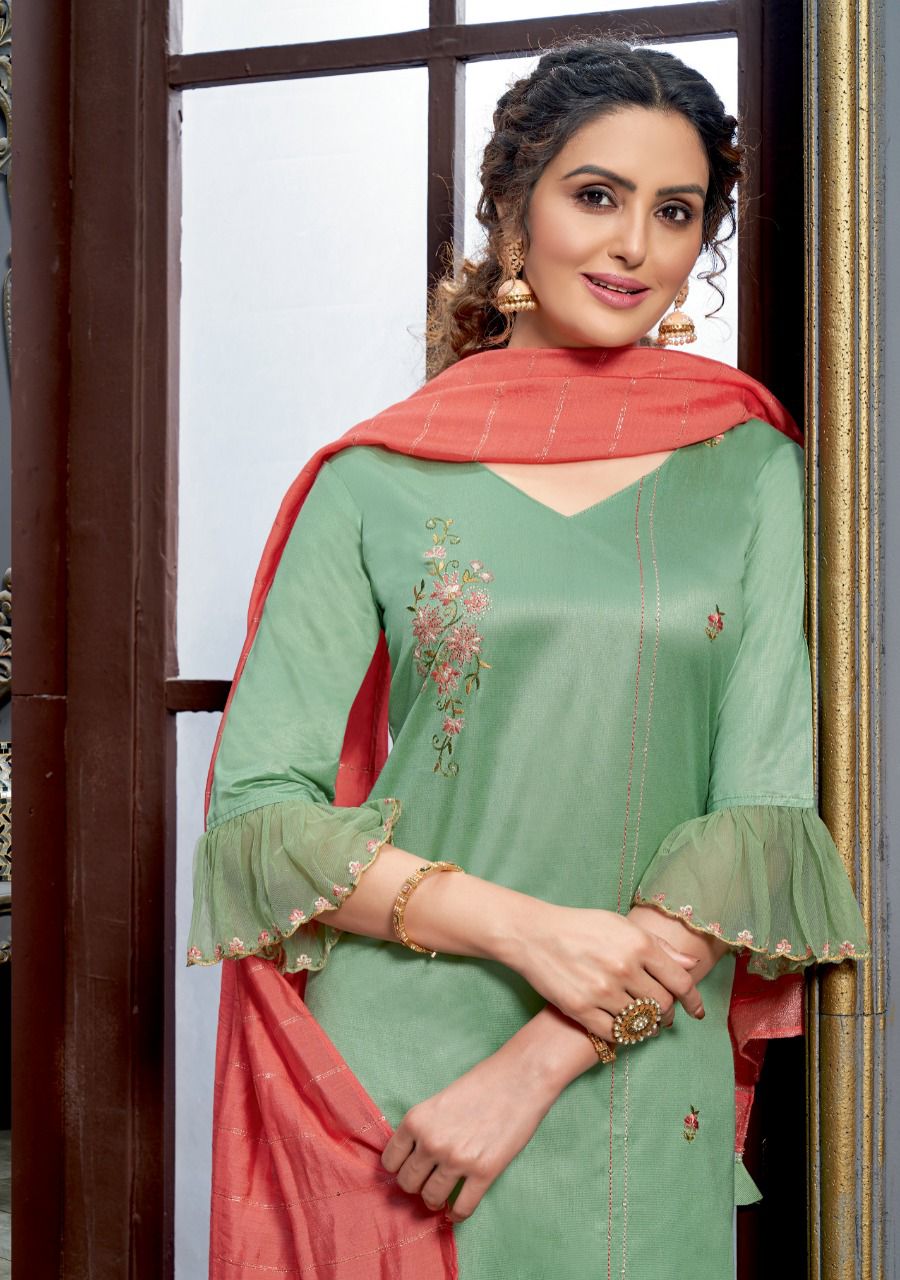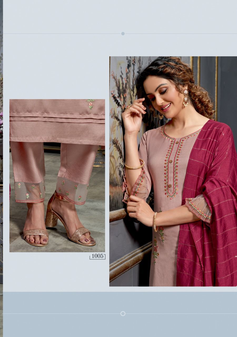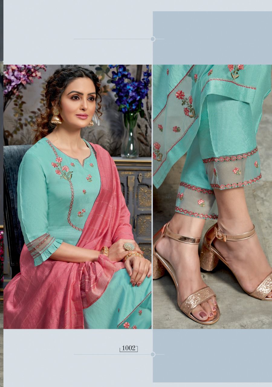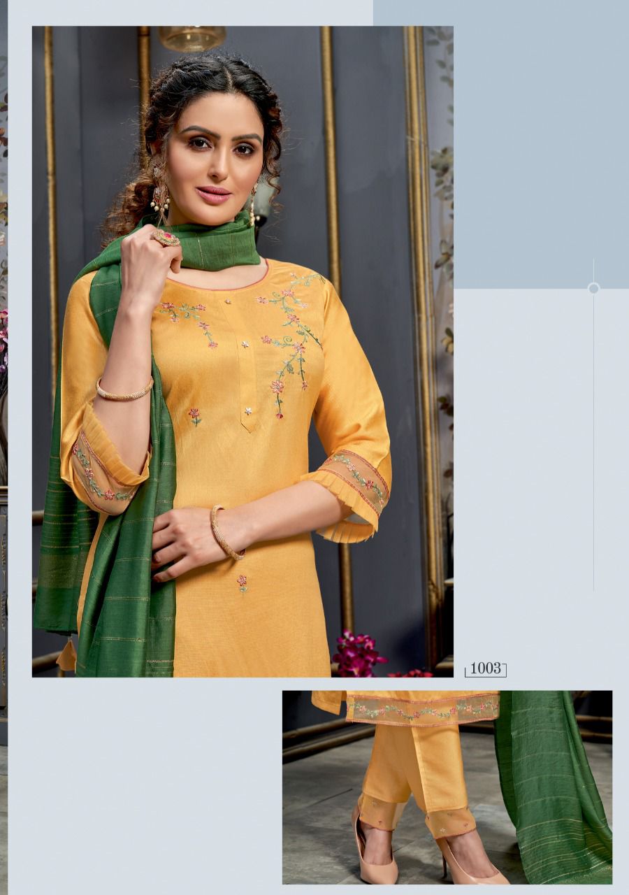 Pink Mirror Presents Radiant 1001 - 1006 Series Viscose With Embroidery Work And Value Addition Fancy Event Wear Salwar Kameez Collection