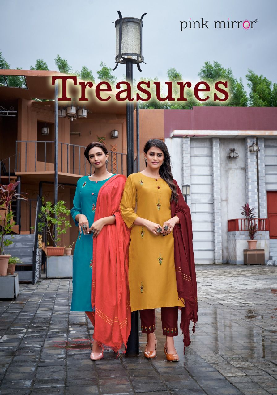 Pink Mirror Presents Treasures 1001 - 1006 Series Viscose With Embroidery Work Fancy Salwar Kameez Collection