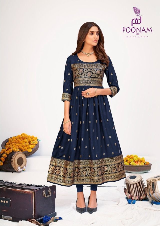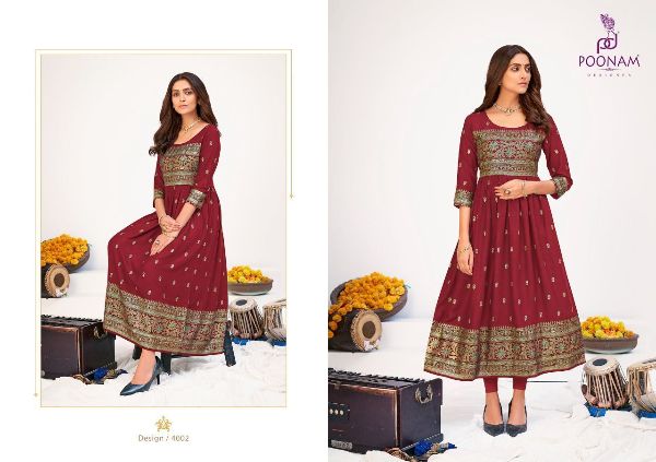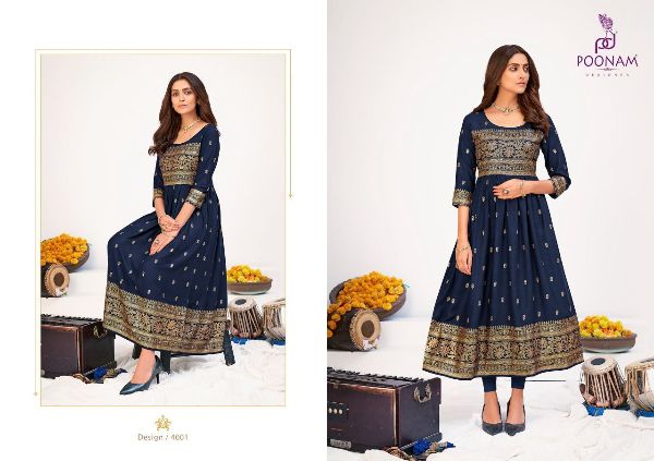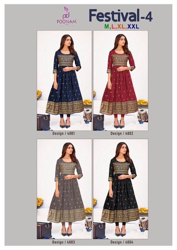 Poonam Presents Festival Vol-4 4001 - 4004 Series Rayon Print Full Flair Fancy Anarkali Kurti Collection