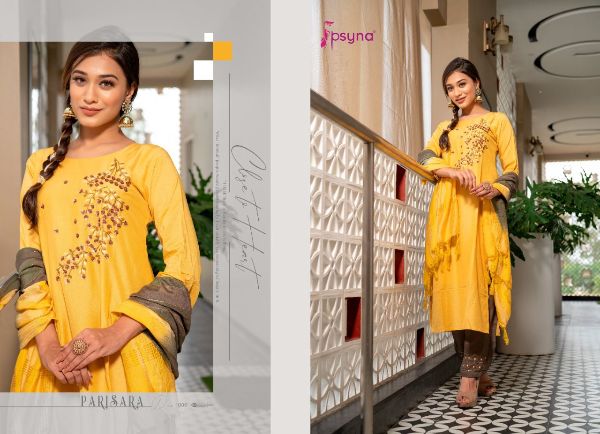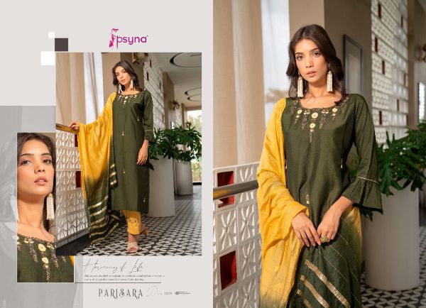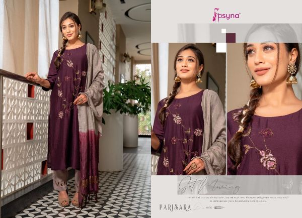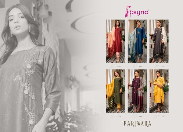 Psyna Presents Parisara 1001-1006 Series Chinon With Handwork Indian Tradition Salwar Suits Collection
