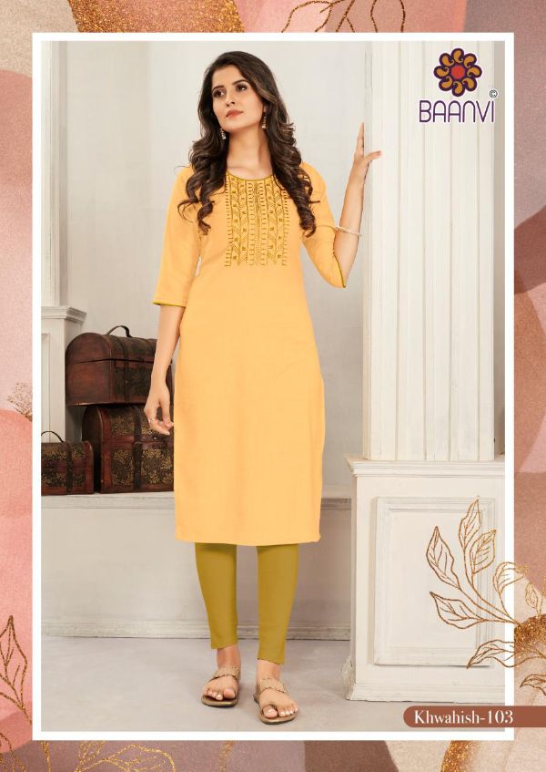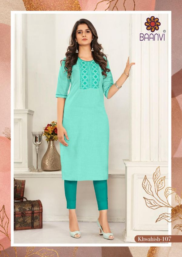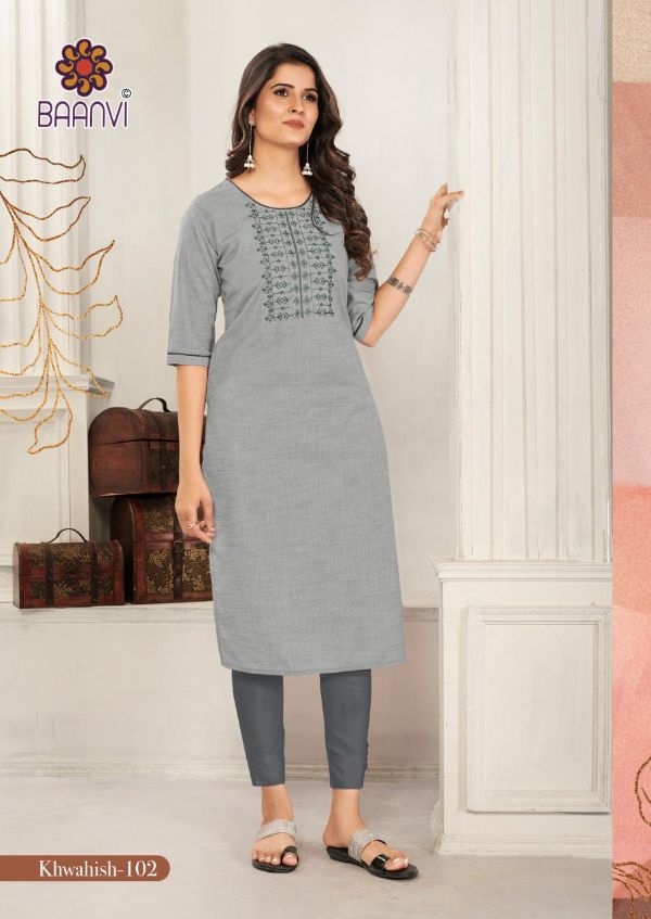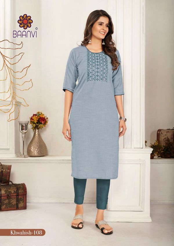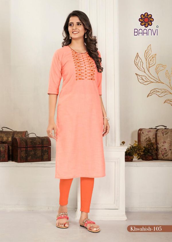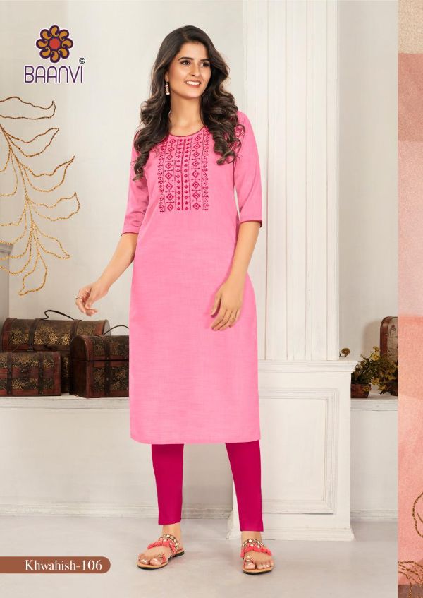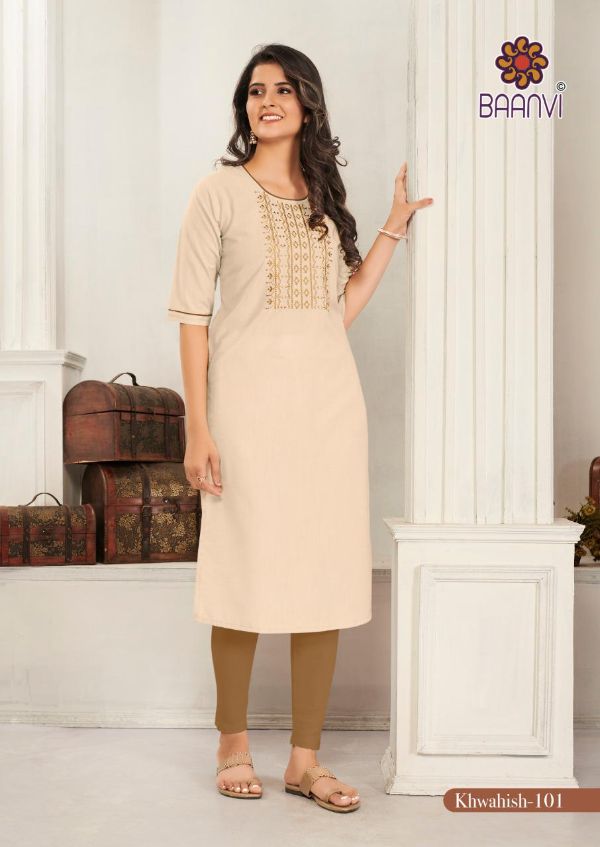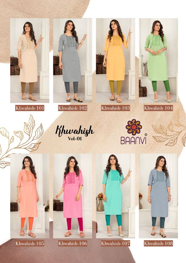 R Studio Presents Khwahish Vol-1 101-108 Series Cotton Slub With Embroidery Work Fancy Kurti Collection