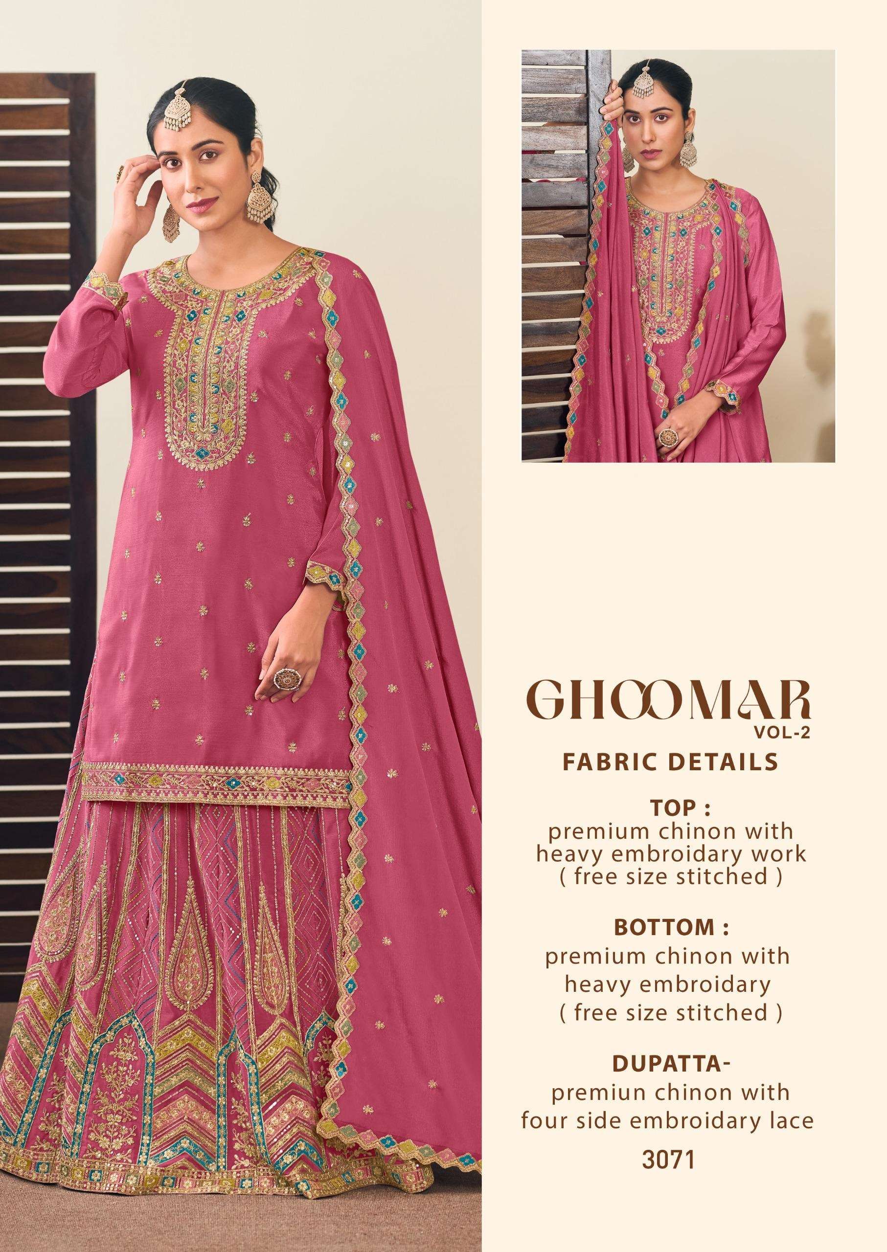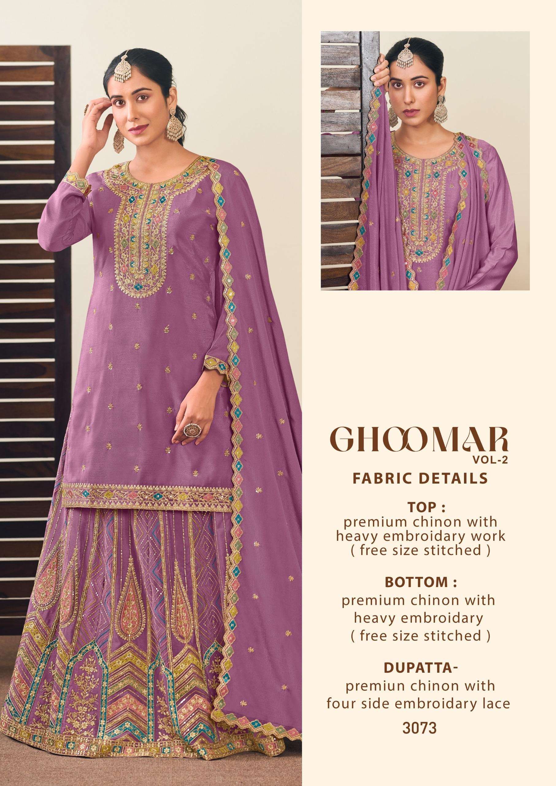 Catalogue: | RADHA TRENDZ GHOOMAR VOL 2 PREMIUM CHINON SUIT WITH EMBROIDARY WORK |