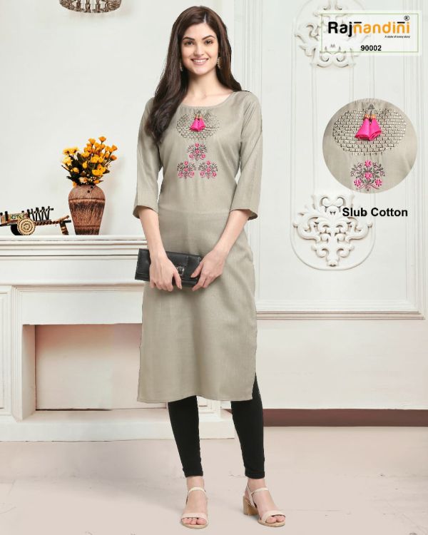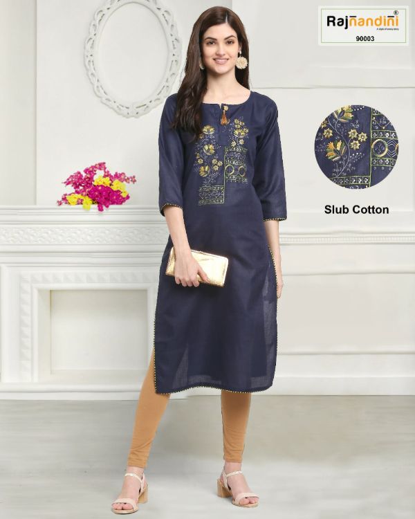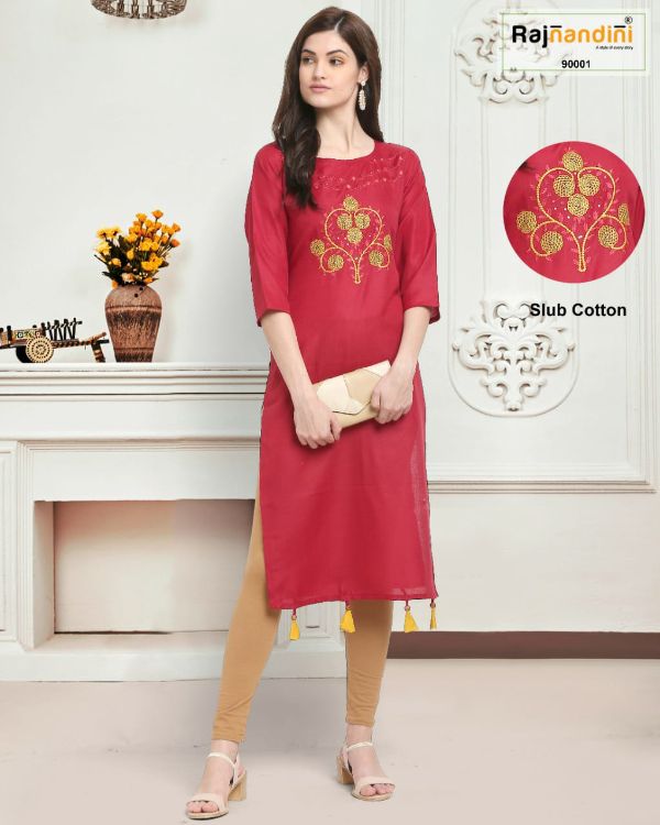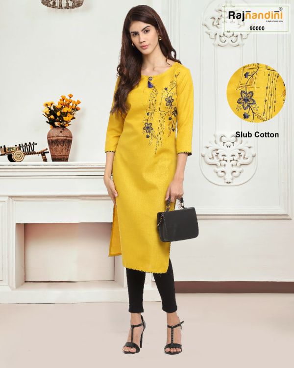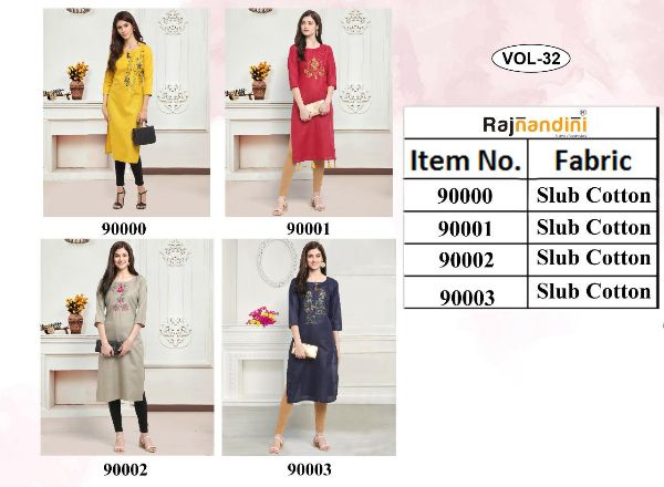 Rajnandini Presents Vol-32 90000 -90003 Series Cotton Slub With Value Added Embroidery Work Kurti Collection