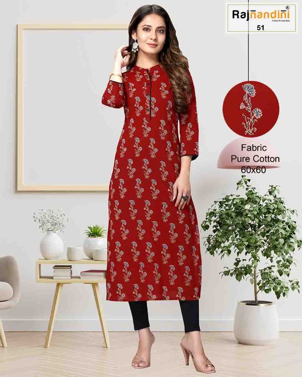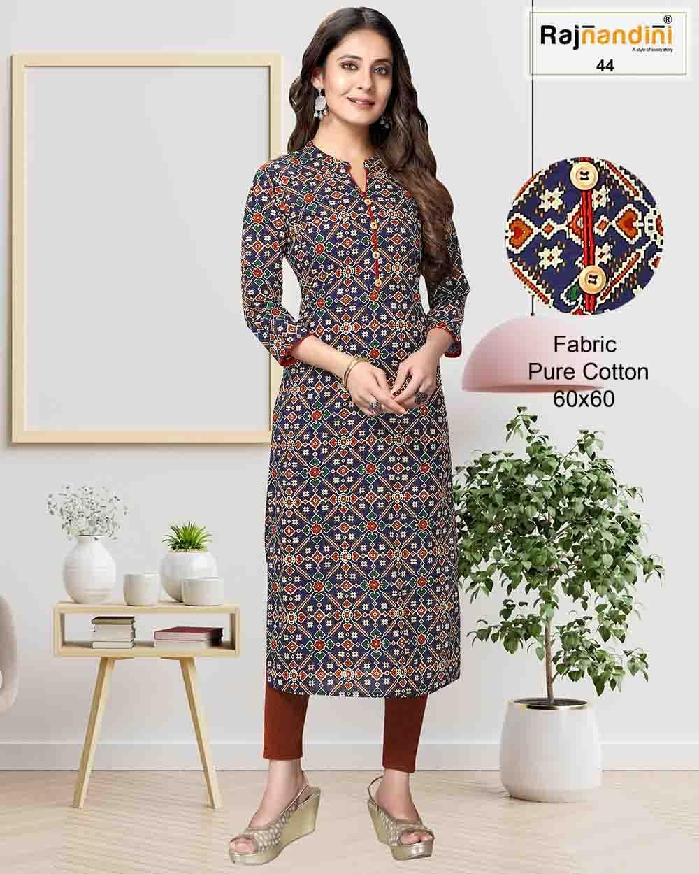 Rajnandini Presents Vol-a Beautiful Pure Cotton With Jaipuri Printed Fancy Kurti Collection