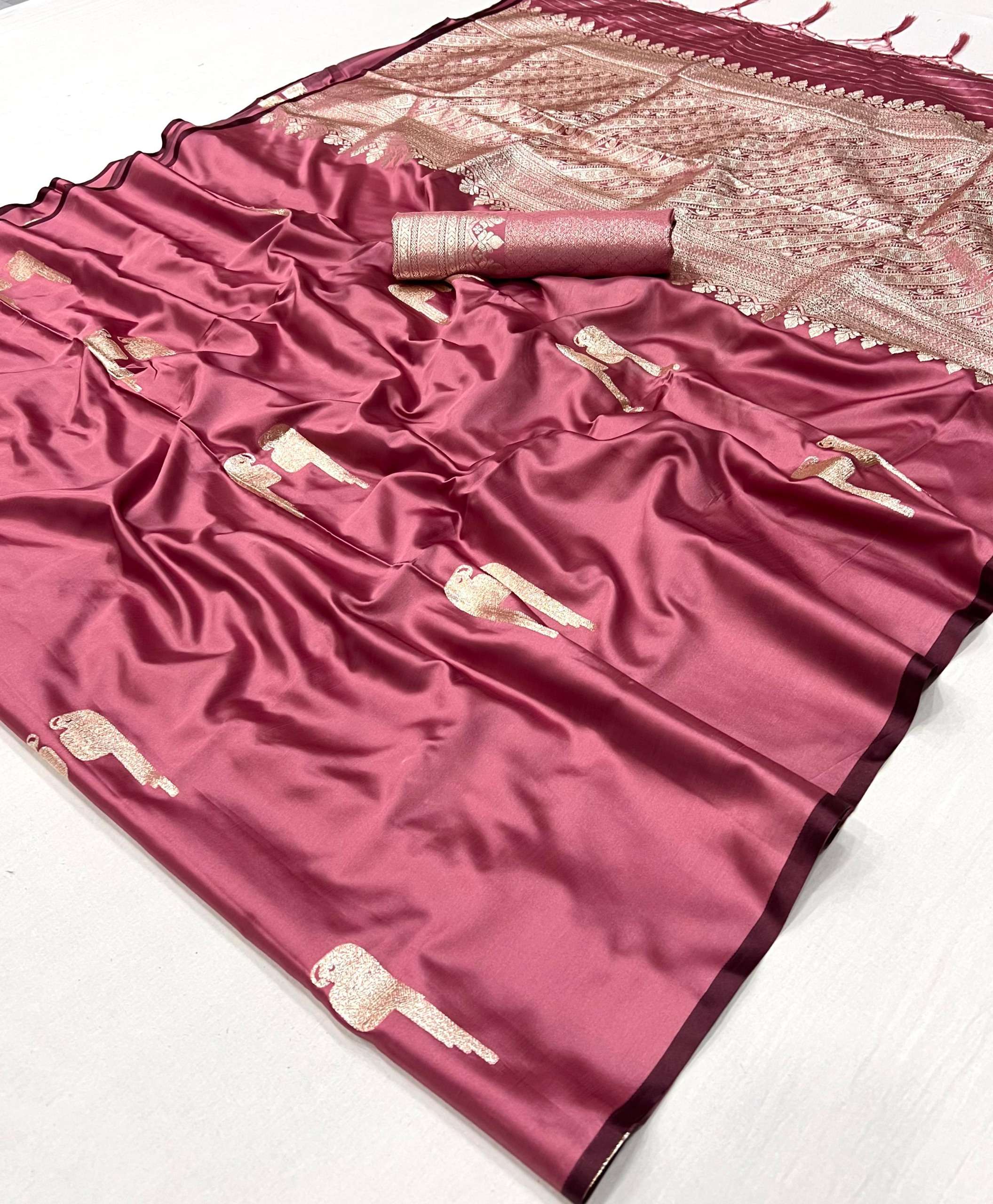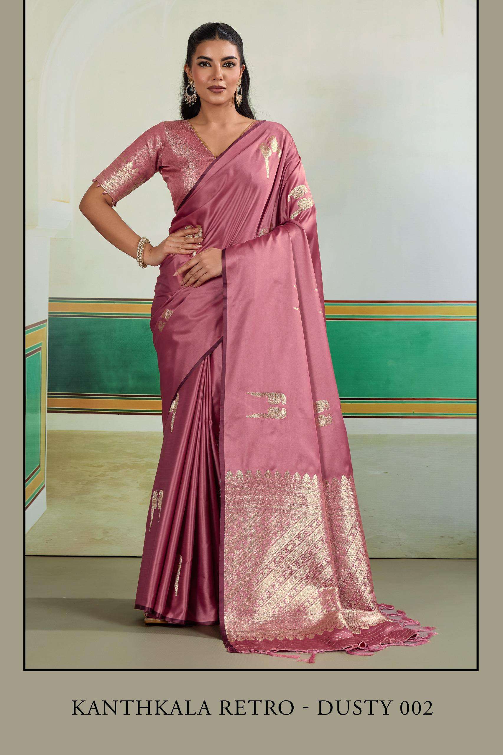 Catalogue: | Rajtex Kanthkala Retro Dusty 001 005 Pure Satin Handloom Weaving Saree |