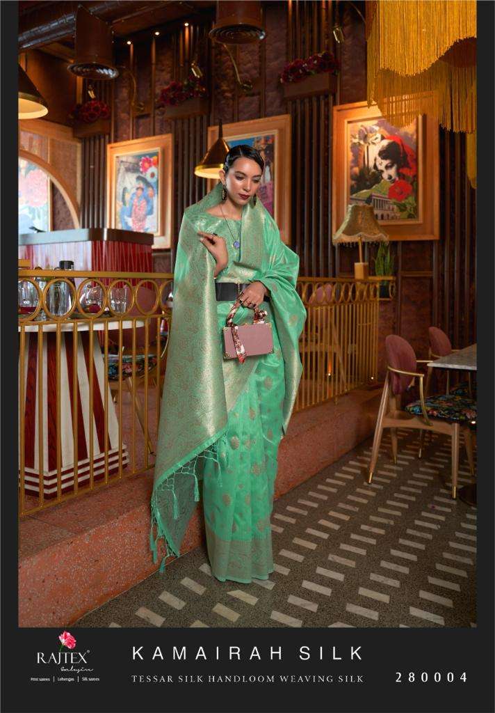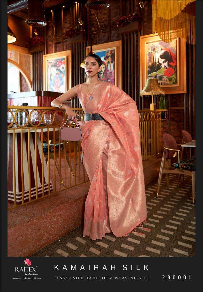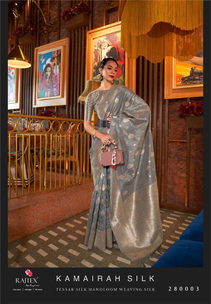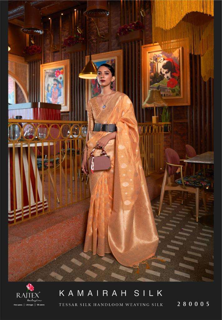 RAJTEX PRESENTS KAMAIRAH SILK DNO 280001 - 280006 SERIES INDIAN WOMEN TRADITIONAL TUSSAR SILK SAREE FESTIVE ETHNIC PARTY WEDDING WEAR SARI HANDLOOM WEAVING WHOLESALE COLLECTION 7453