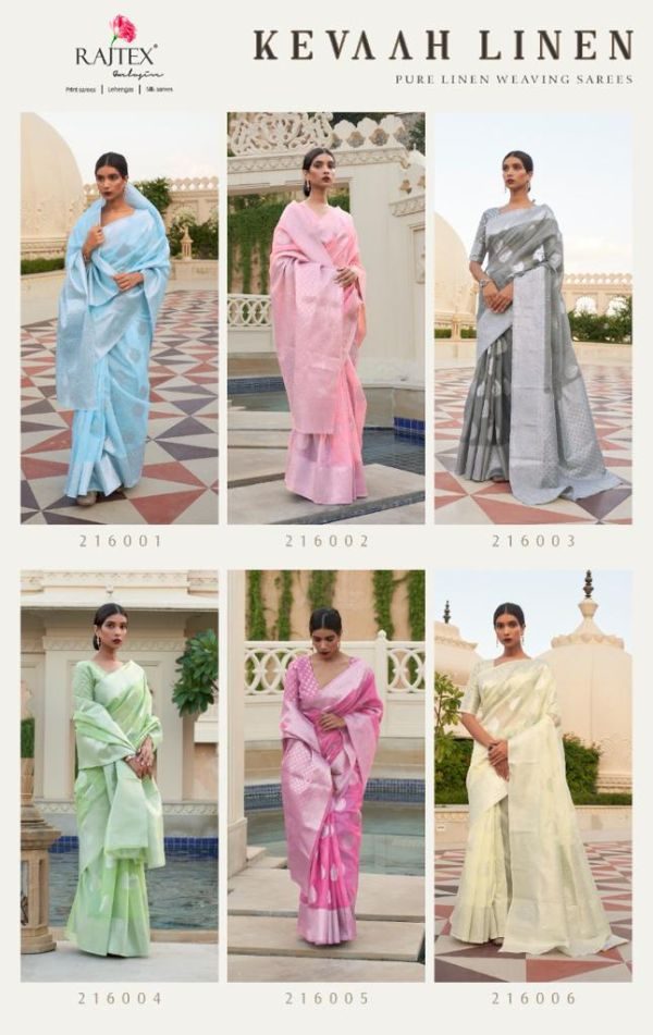 Rajtex Presents Kevaah Linen 216001 To 216006 Series Pure Linen Silk Weaving Sarees Collection At Wholesale Price