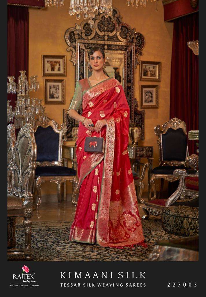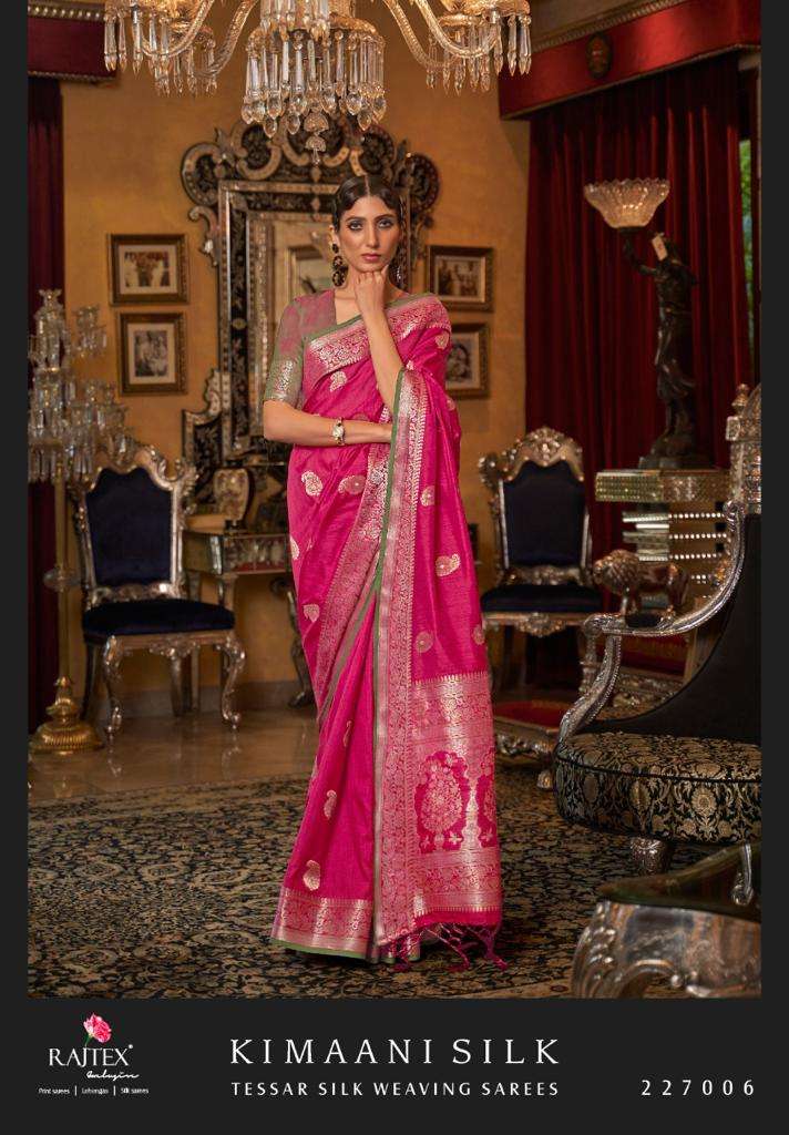 RAJTEX PRESENTS KIMAANI SILK DNO 227001 - 227006 SERIES INDIAN WOMEN DESIGNER FANCY SILK SAREE SARI PARTY WEDDING WEAR COLLECTION