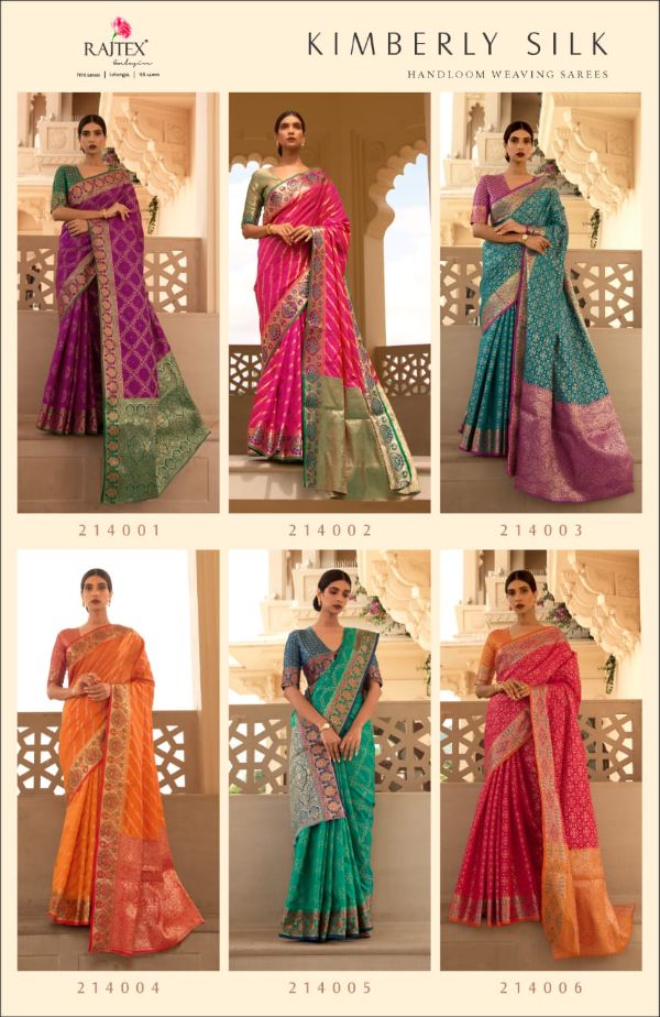 Rajtex Presents Kimberly Silk 214001-214006 Series Soft Silk Weaving With Beautiful Border Fancy Saree Collection