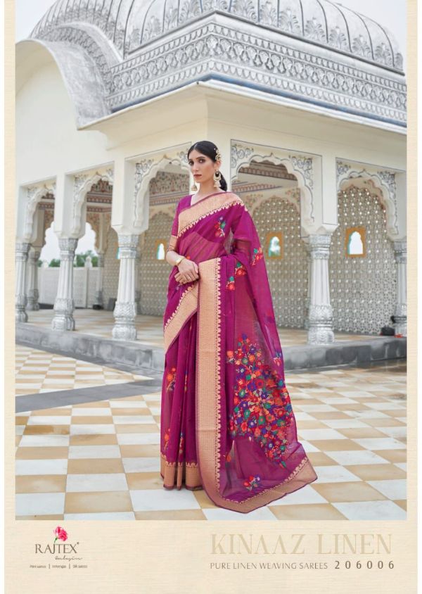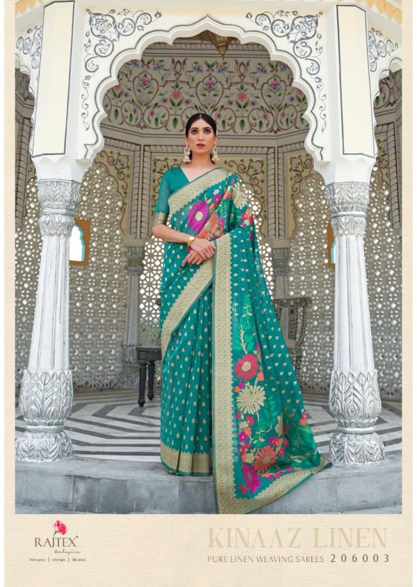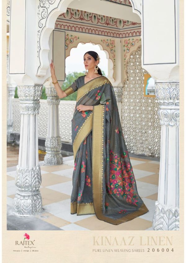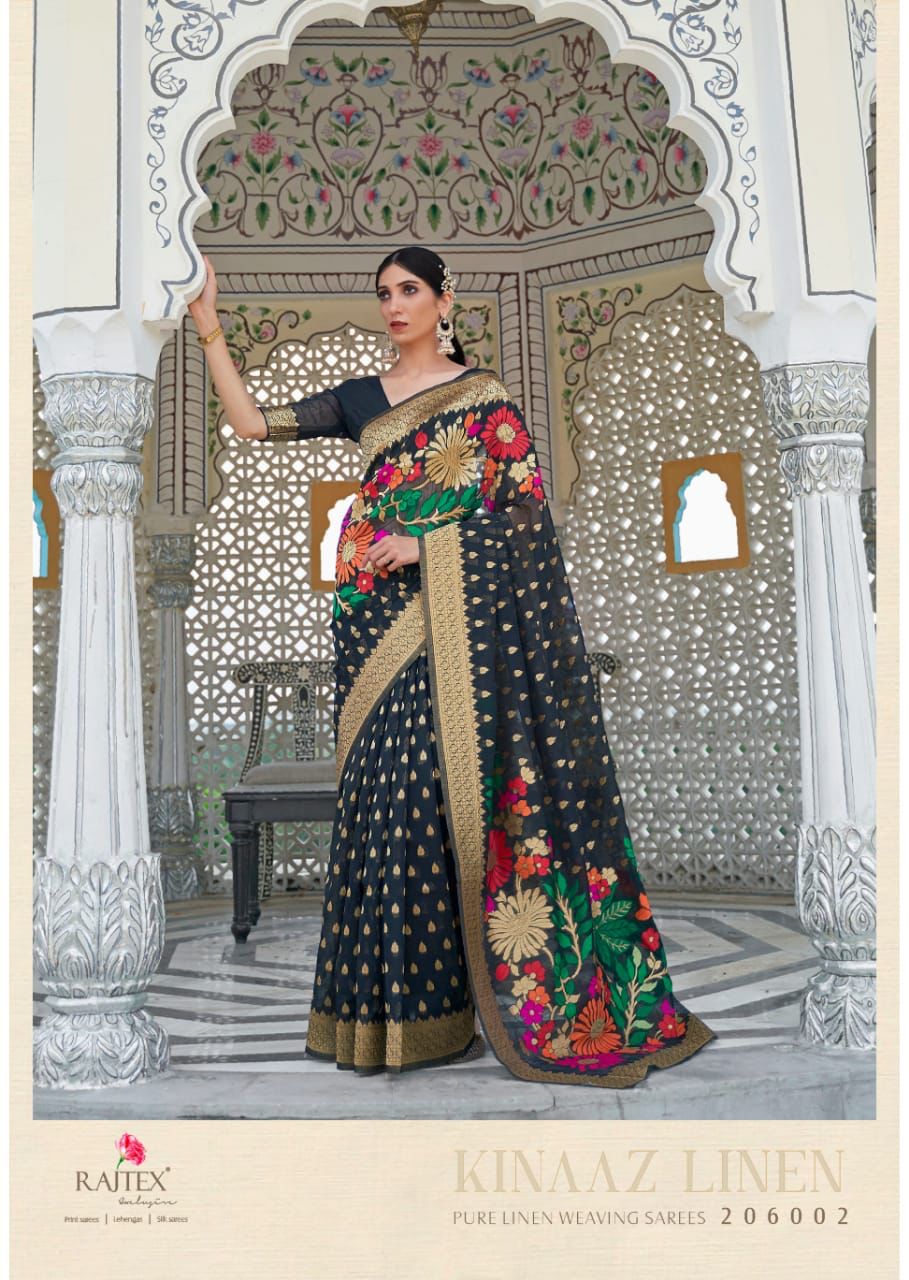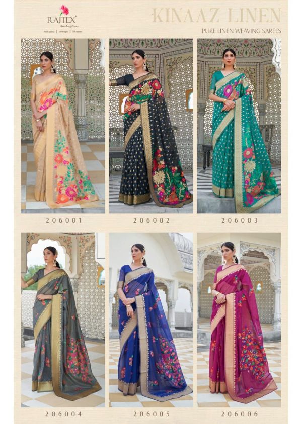 Rajtex Presents Kinaz Linen 206001-206006 Series Pure Linen Weaving Silk Saree Collection