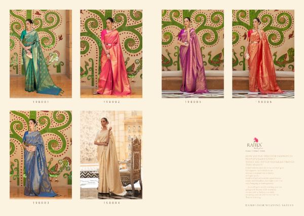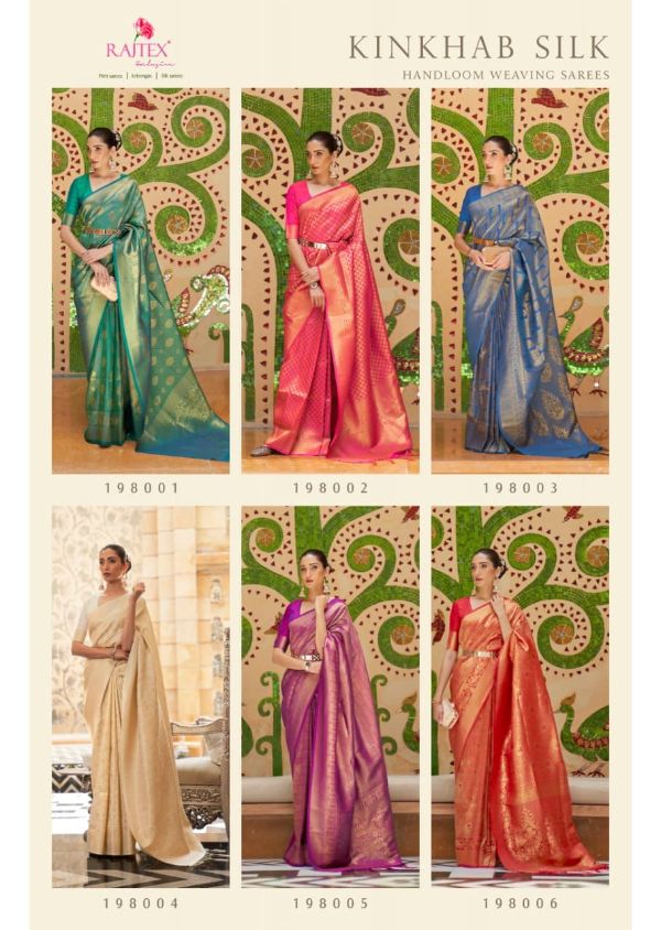 Rajtex Presents Kinkhab Silk 198001-198006 Series Handloom Weaving Saree Collection