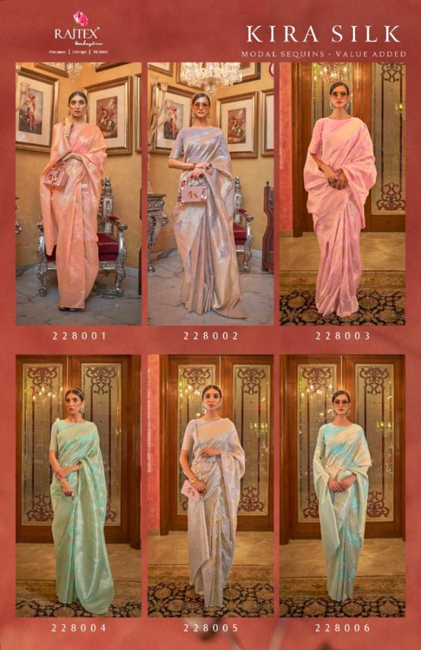 Rajtex Presents Kira Silk 228001-228006 Series Modal Sequins Weaving Added Fancy Saree Collection