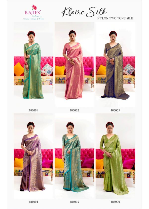 Rajtex Presents Klaire Silk 186001-186006 Series Nylon Two Ton Silk Saree Collection