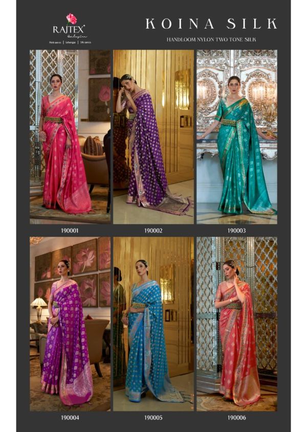 Rajtex Presents Koina Silk 190001-190006 Series Handloom Nylon Two Ton Silk Saree Collection
