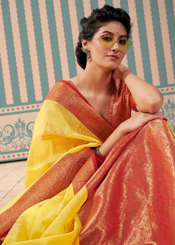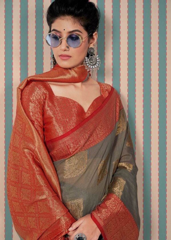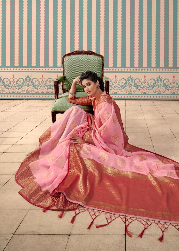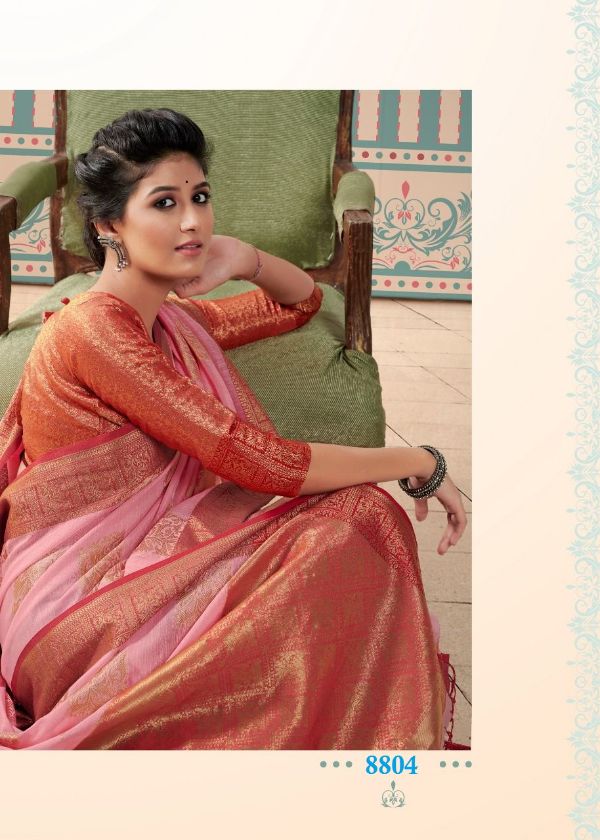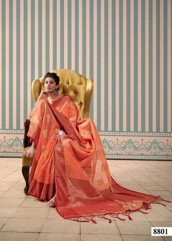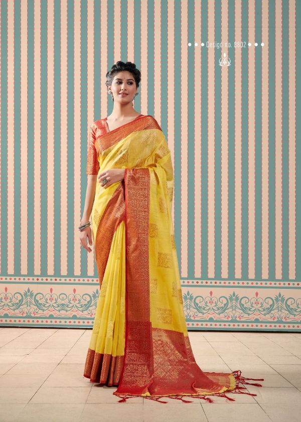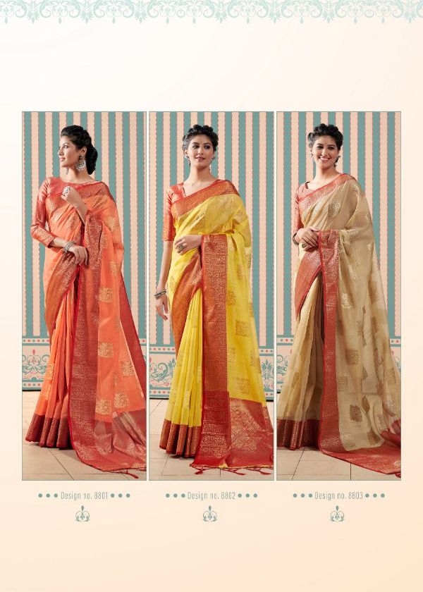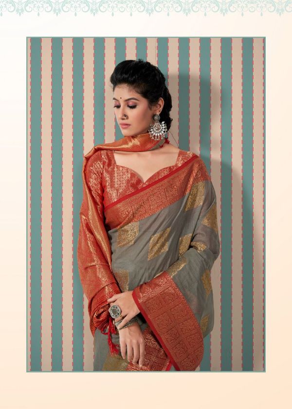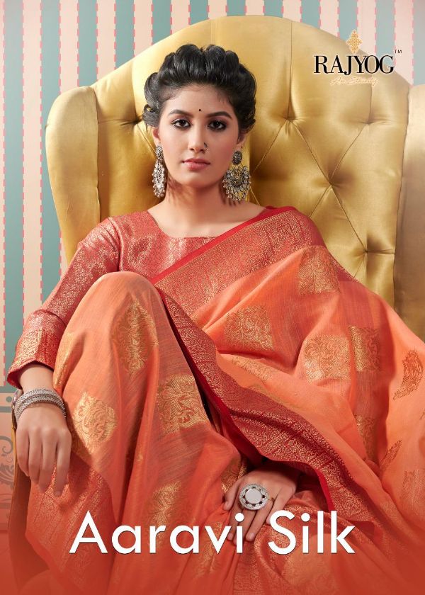 Rajyog Presents Aarvi Silk 8801-8806 Series Soft Krystal Linen Silk With Contrast Border Saree Collection#2067