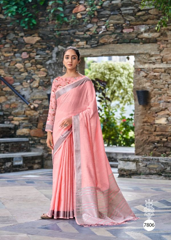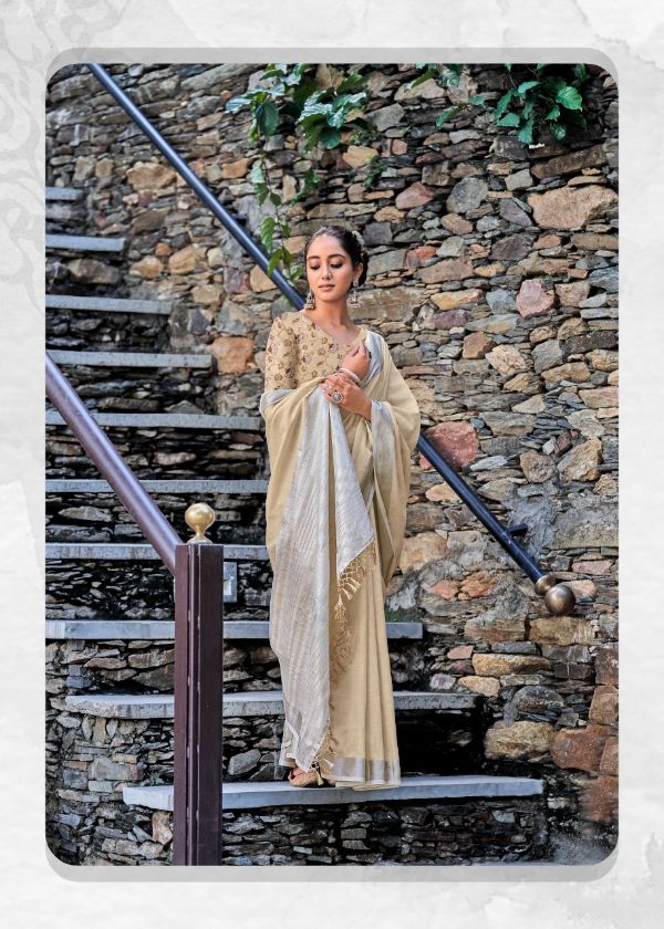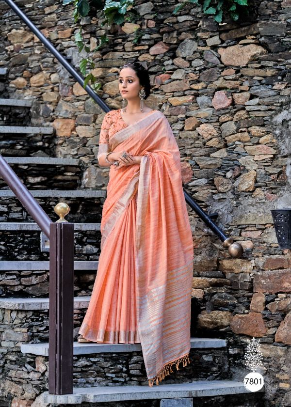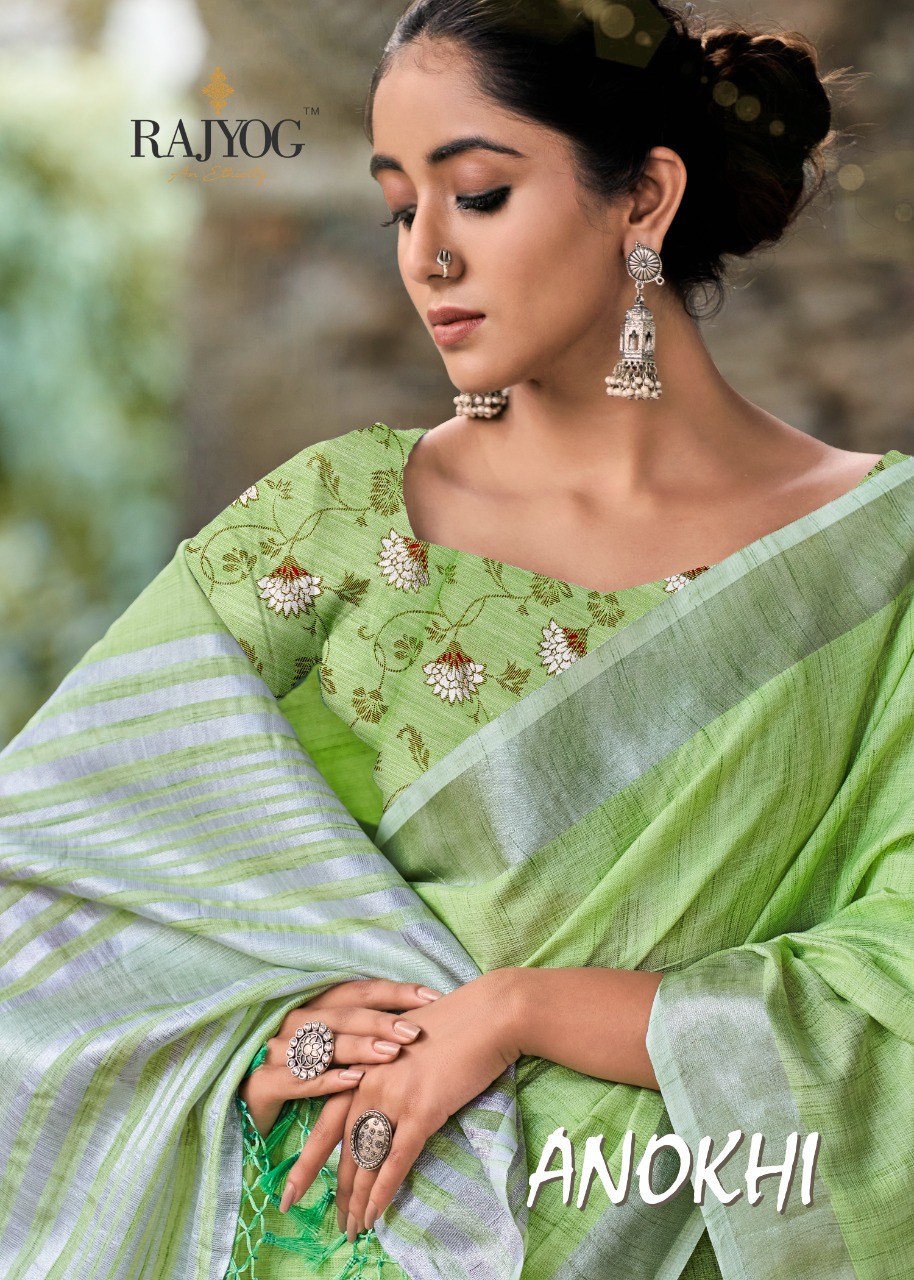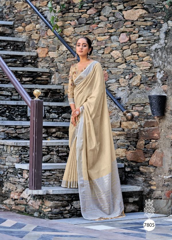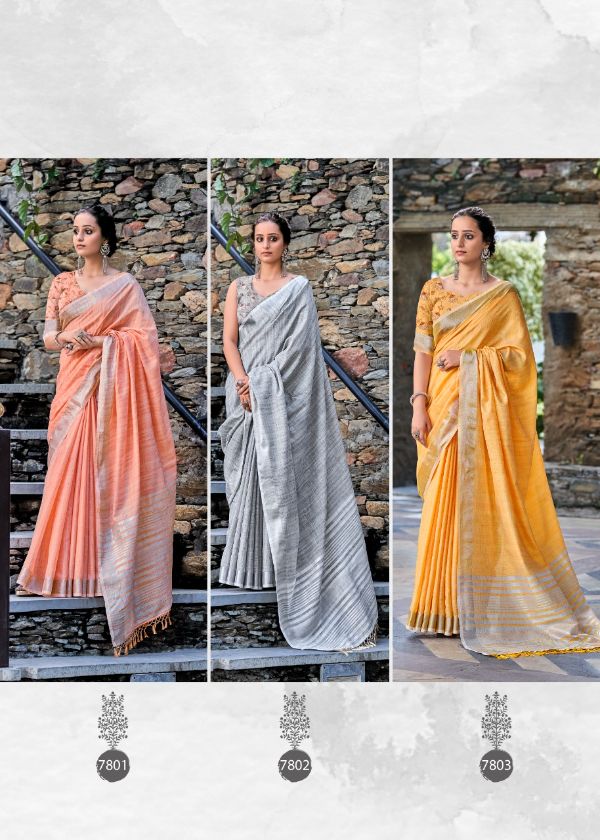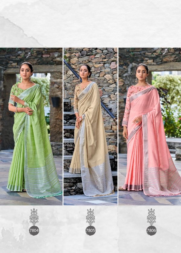 Rajyog Presents Anokhi 7801-7806 Series Soft Linen With Foil Work Fancy Saree Collection
