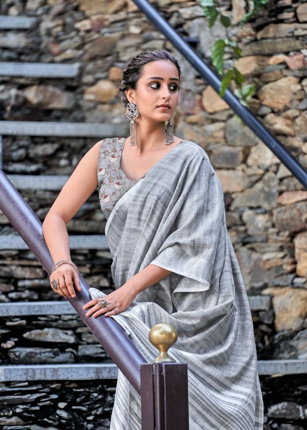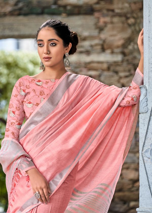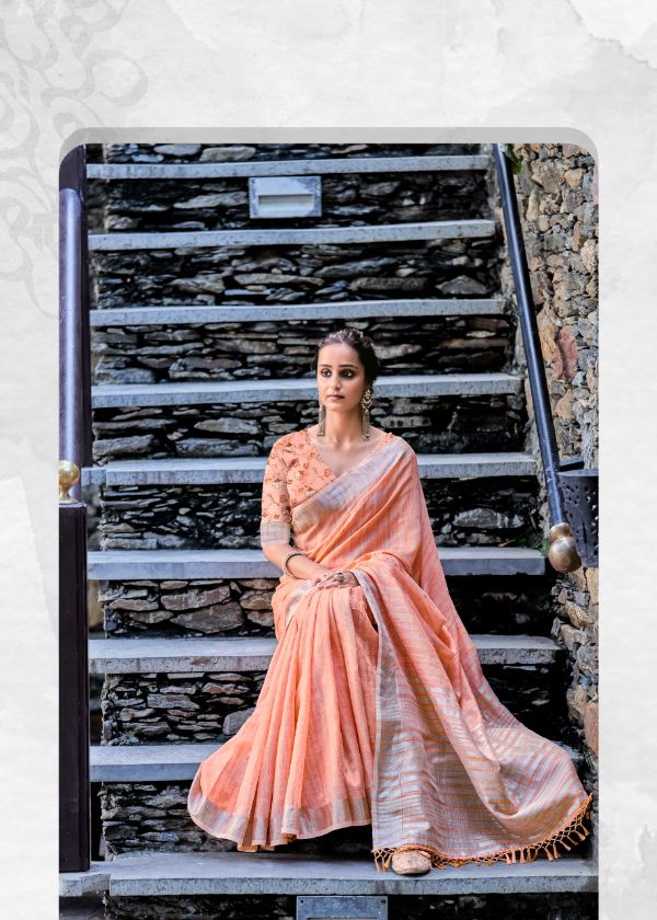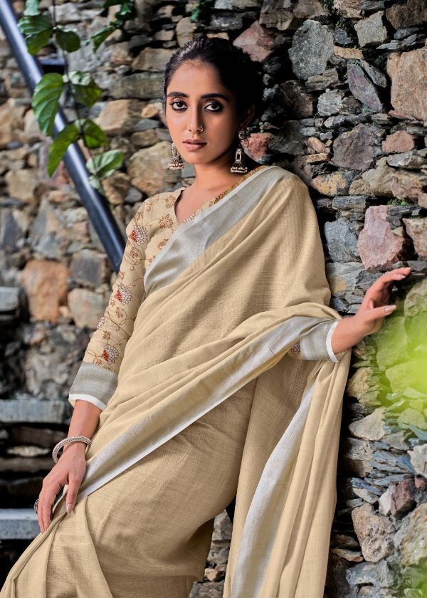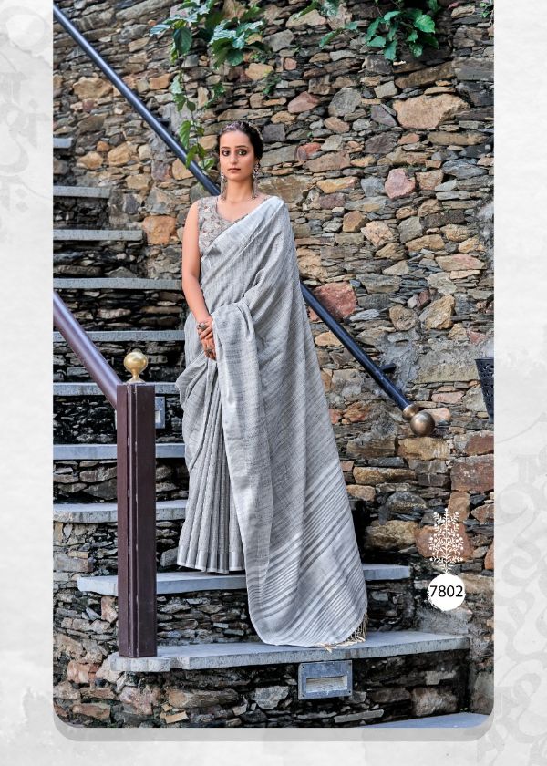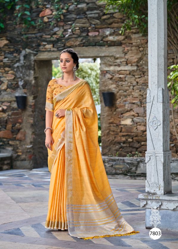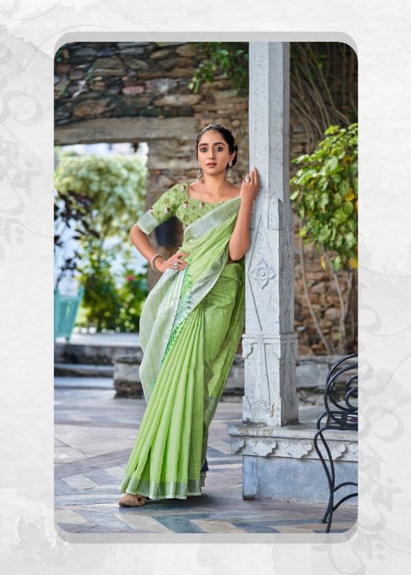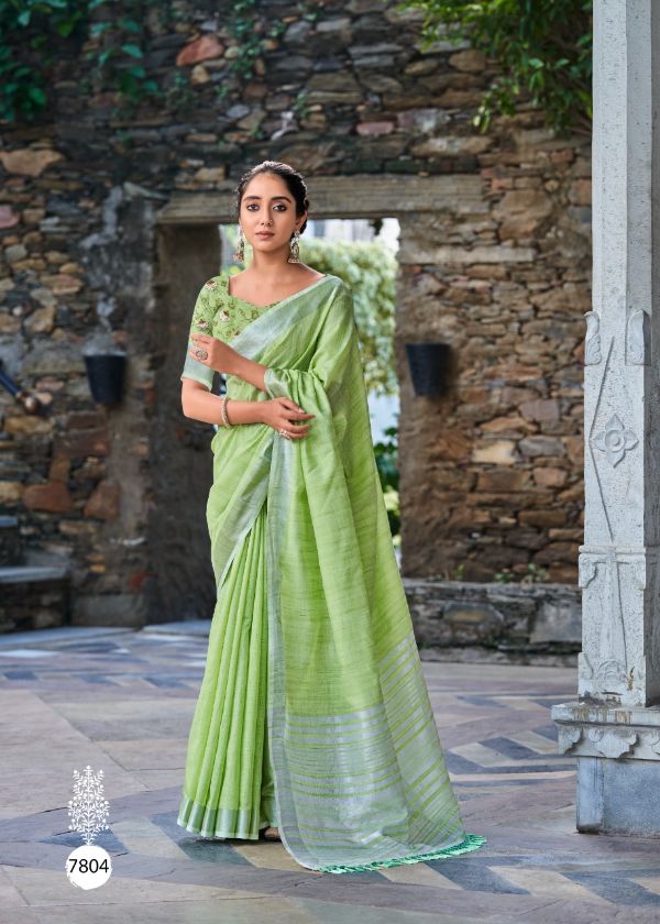 Rajyog Presents Anokhi 7801-7806 Series Soft Linen With Foil Work Fancy Saree Collection