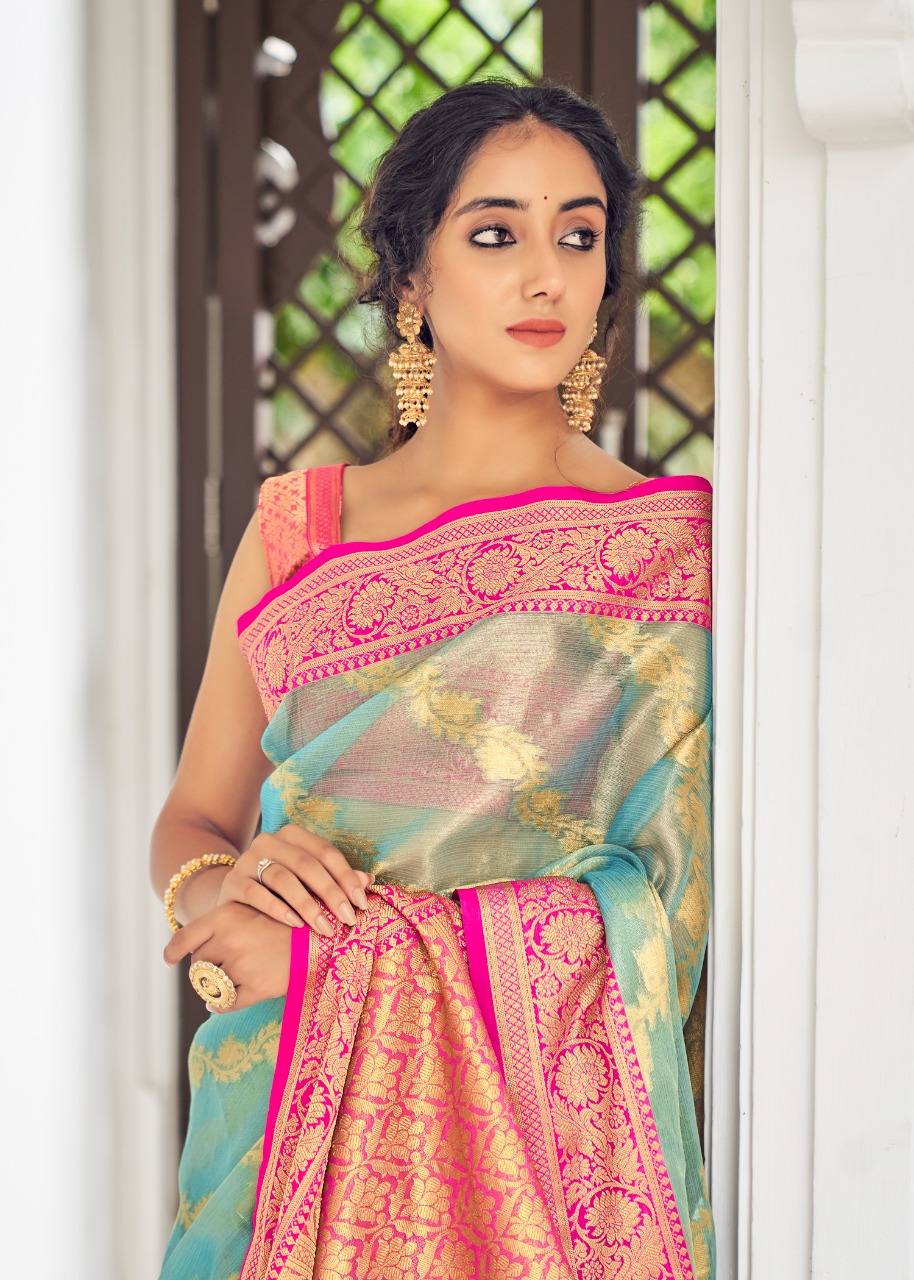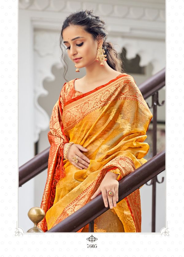 Rajyog Presents Aspen 7601-7606 Series Soft Tissue Silk With Banarasi Border Saree Collection