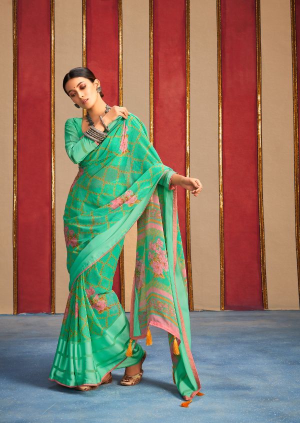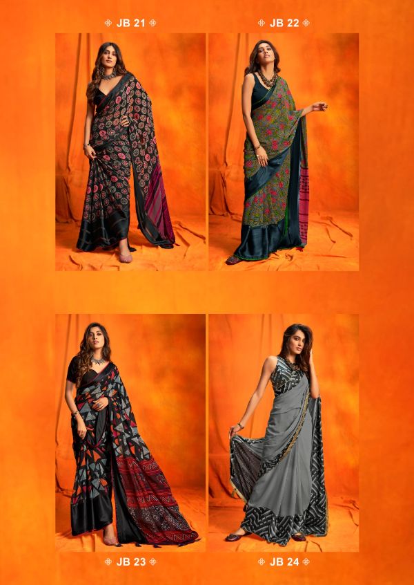 Rajyog Presents Jeevika-2 Jb21 - Jb24 Series Weightless Satin Border With Beautiful Prints Fancy Event Wear Saree Collection
