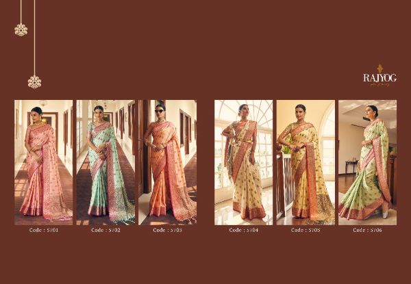 Catalogue: Rajyog Presents Nazakat 5701-5606 Series Tusser Silk Weaving Attractive Saree Collection