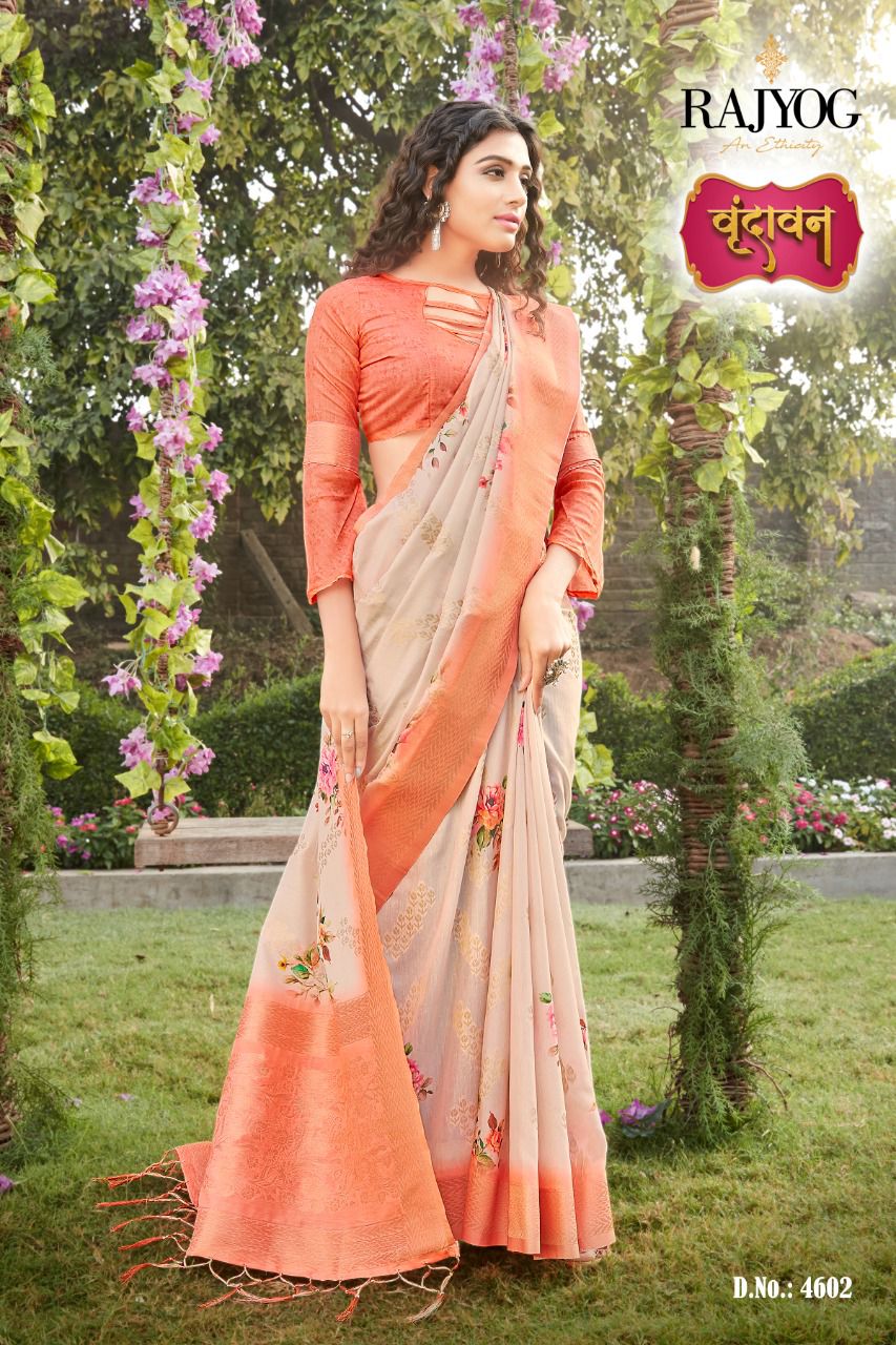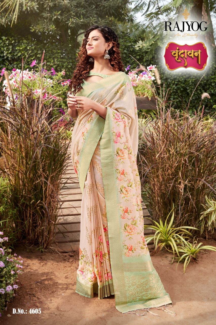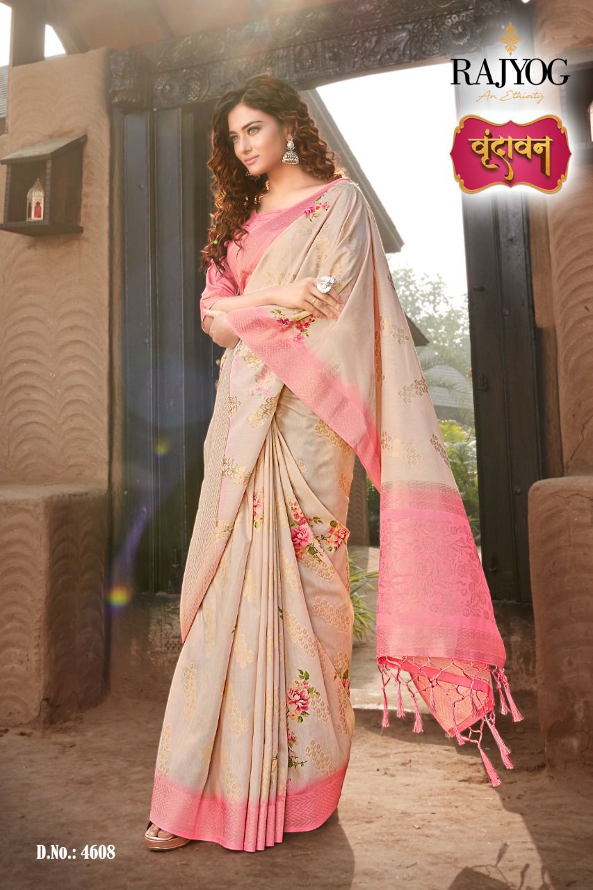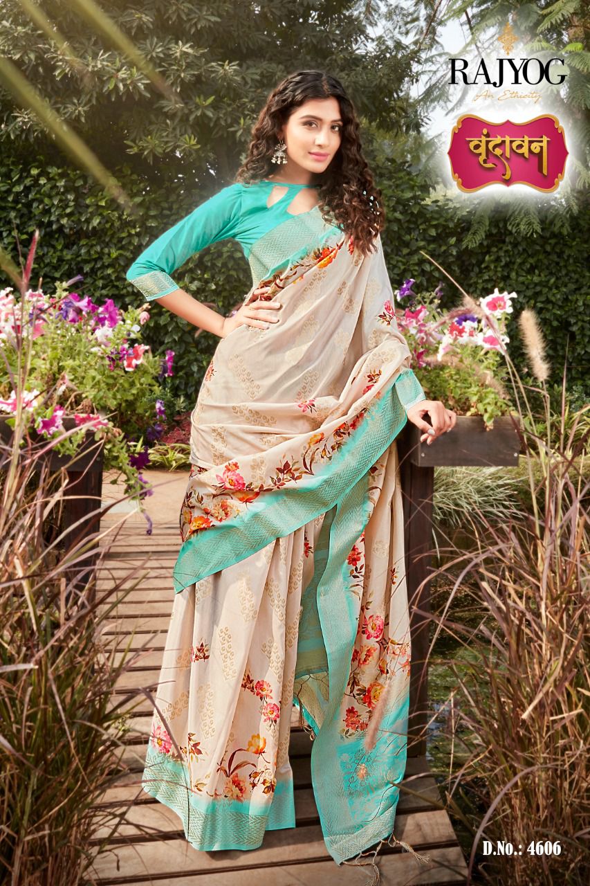 Rajyog Presents Vrindavan Silk 4601 - 4608 Series Soft Butti Banarasi Silk With Digital Print Fancy Event Wear Saree Collection