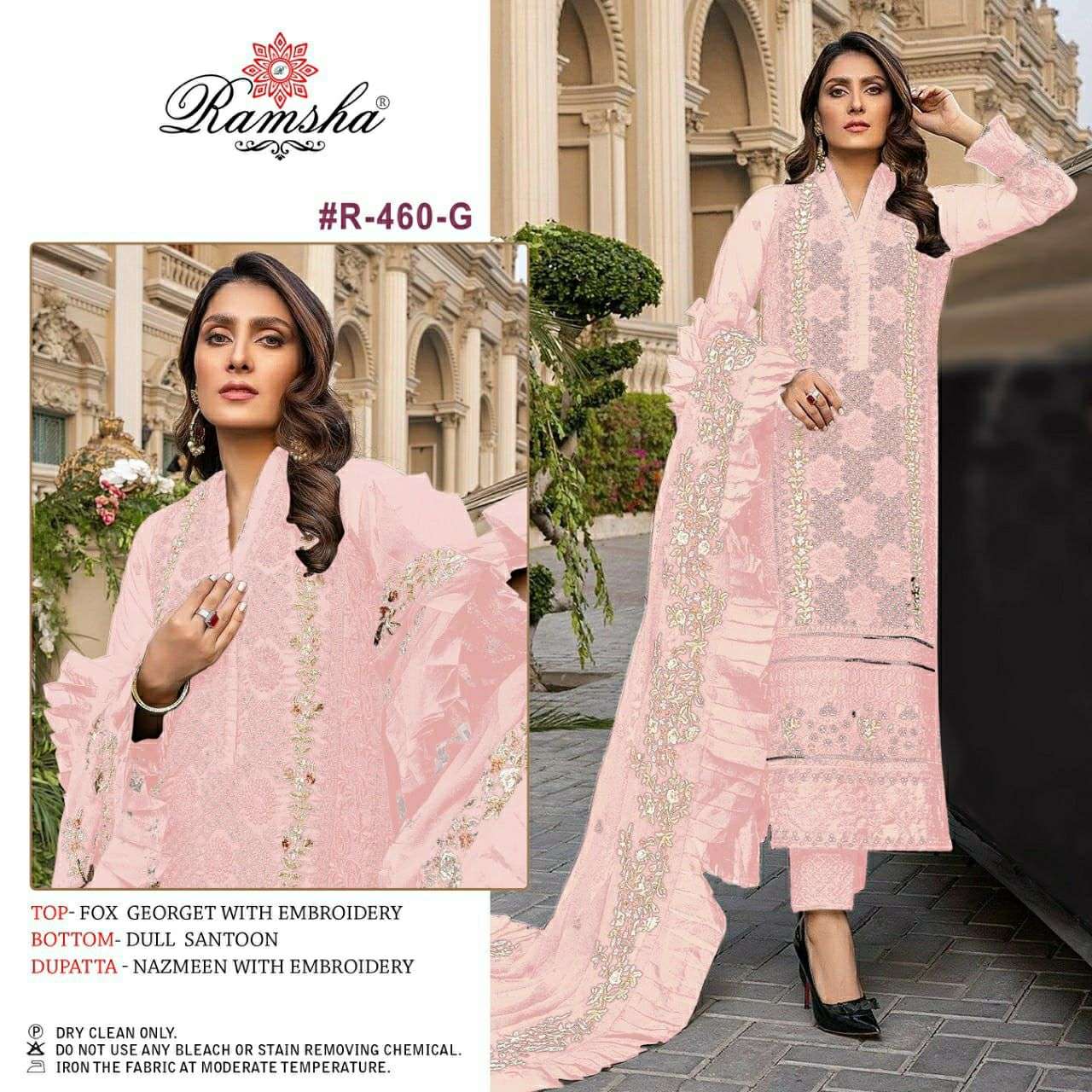 RAMSHA PRESENTS 460 LIGHT NX 460-E TO 460-H SERIES GEORGETTE PAKISTANI SUITS COLLECTION