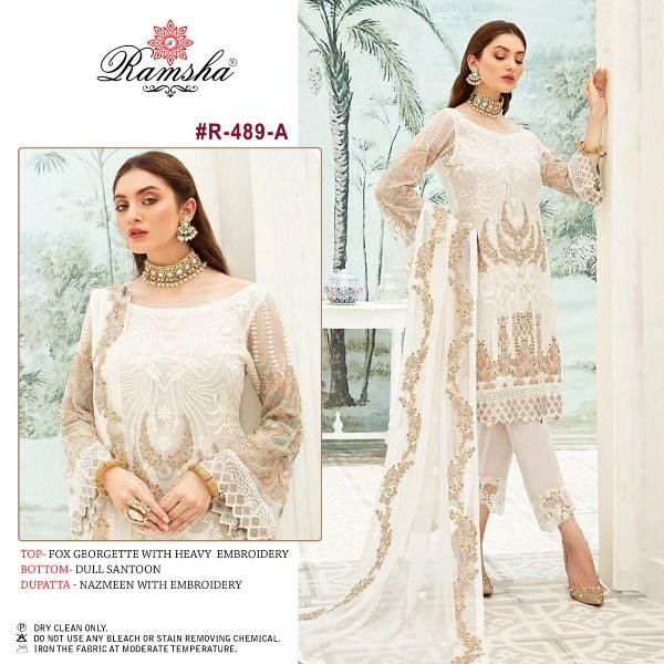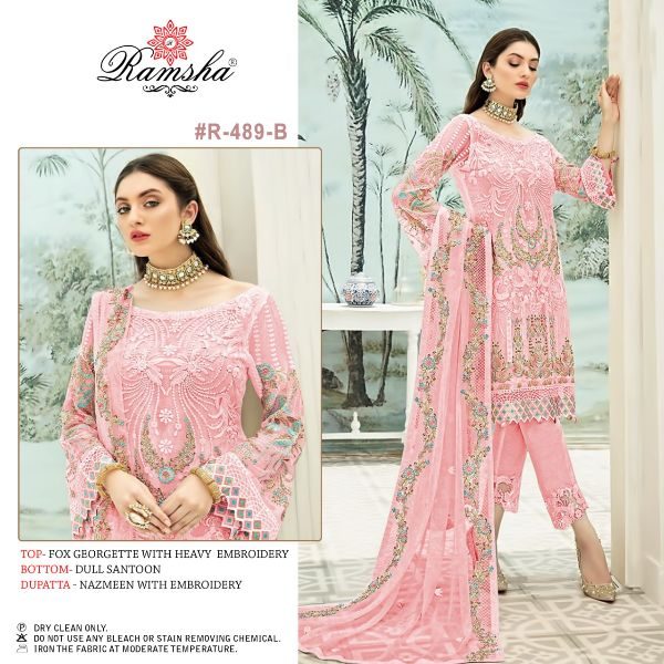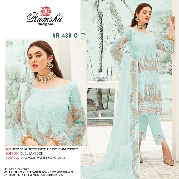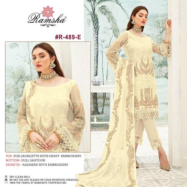 | Catalogue: | Ramsha Presents 489 Nx 489-a To 489-e Series Georgette Embroidered Salwar Suits Pakistani Collection At Wholesale Price |