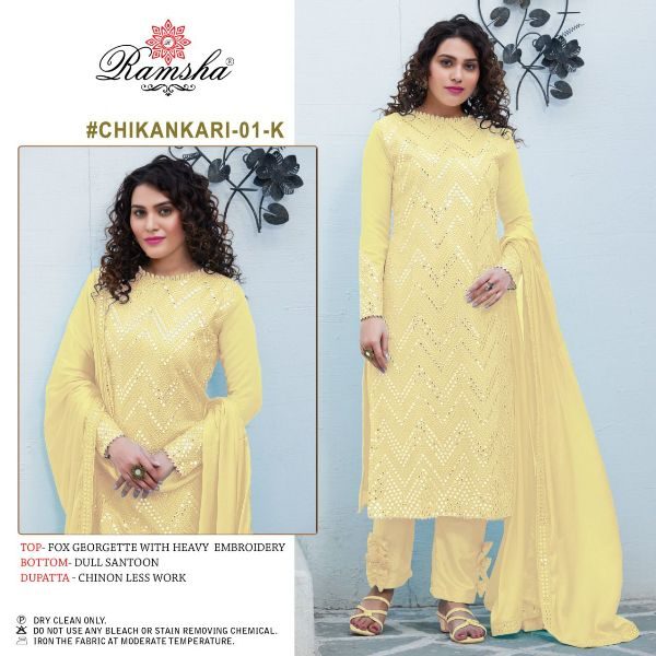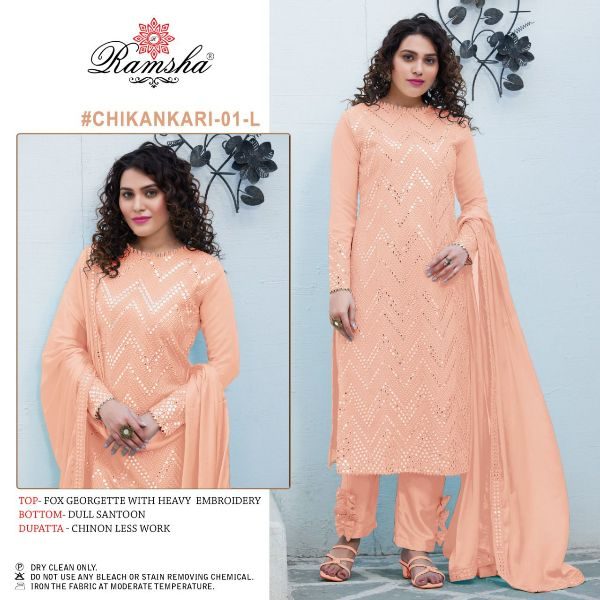 Ramsha Presents Chikankari Dno 01 I - 01-l Series Designer Pakistani Salwar Kameez Suit Festive Party Wear At Wholesale Price