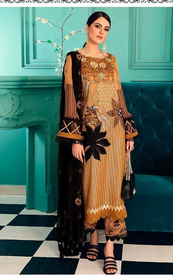Latest Designer pakistani suits Collection. Exclusive with Foil & Thread Embroidery Work gives a Fashionable Look, High sensed style and luxury makes you ready for envious glazes and very rich & Royal in the Party, Function, Event etc.