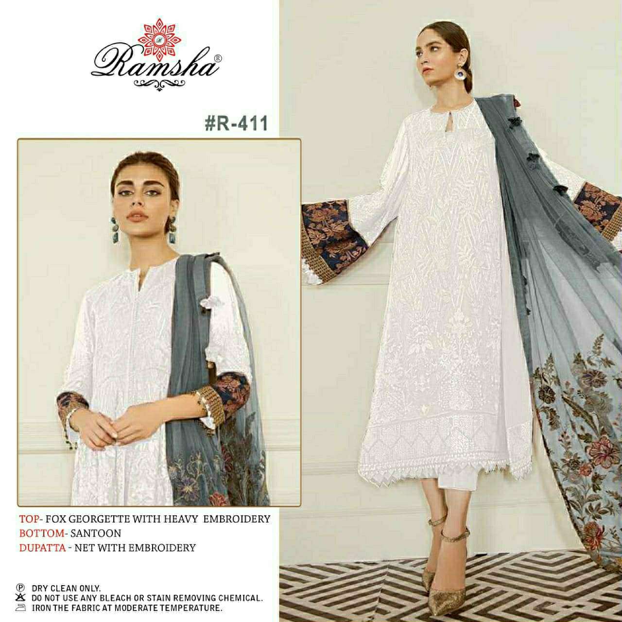 RAMSHA PRESENTS DNO R-411 WHITE INDIAN WOMEN PAKISTANI SALWAR KAMEEZ SUIT TRADITIONAL ETHNIC FESTIVE PARTY EID WEAR COLLECTION KK