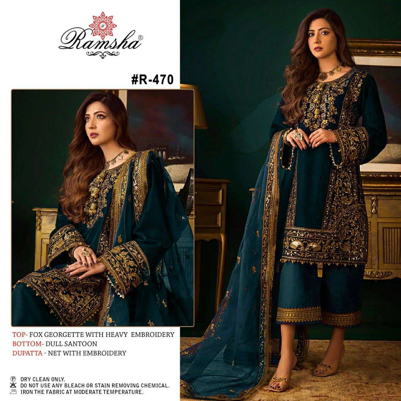RAMSHA PRESENTS DNO R-470 TEAL INDIAN WOMEN DESIGNER NET PARTY WEDDING WEAR SALWAR KAMEEZ SUIT COLLECTION
