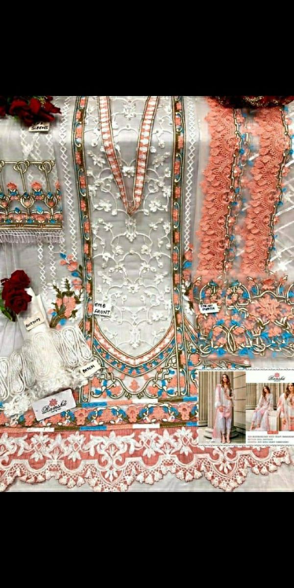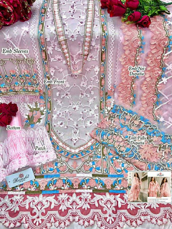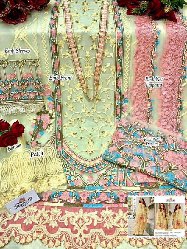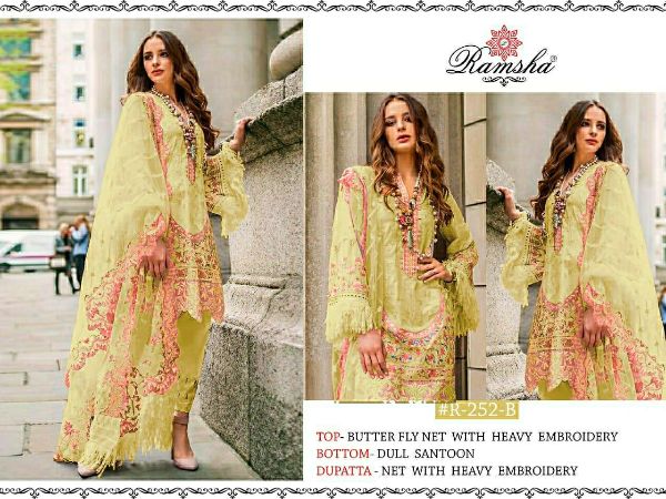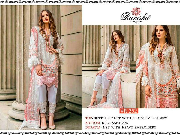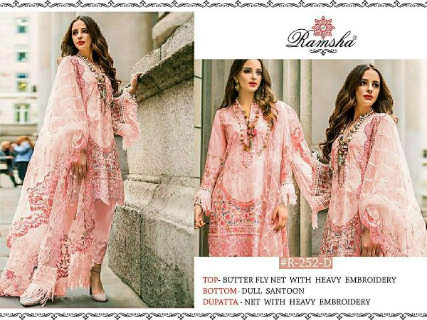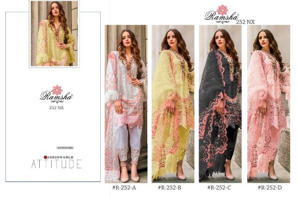 Ramsha Presents R-252 A To R-252 D Series Designer Heavy Embroidery Work Women Net Pakistani Style Party Wear Pant Suit Collection