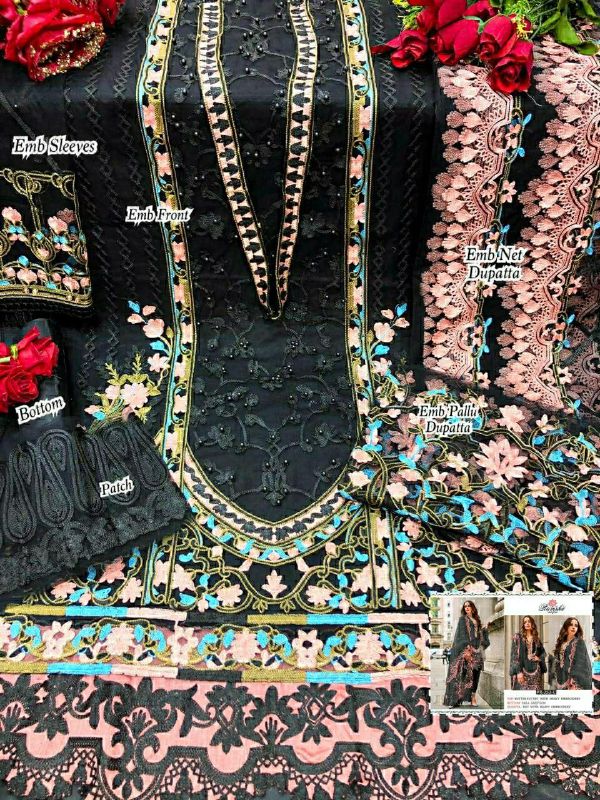 Fabric: TOP : Net || BOTTOM : Dull Santoon || DUPATTA : Net || WORK : Enhanced With Heavy Embroidery Patch, Lace And Moti Work.