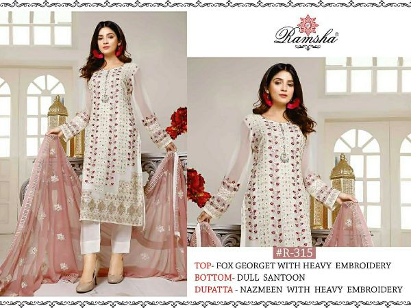 Ramsha Presents R-315 Fox Georgette With Heavy Embroidery Work Pakistani Suits Collection#1616