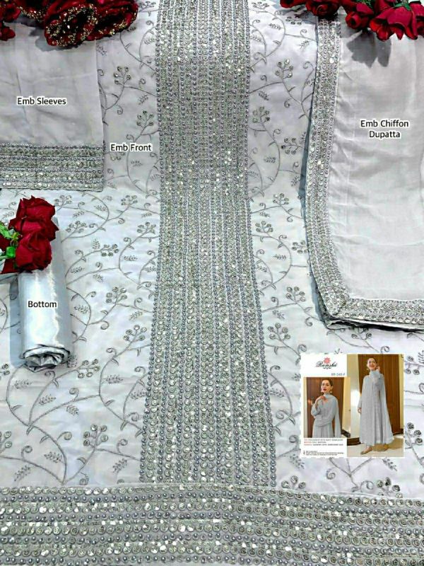 Latest Designer pakistani suits Collection. Exclusive with Foil & Thread Embroidery Work gives a Fashionable Look, High sensed style and luxury makes you ready for envious glazes and very rich & Royal in the Party, Function, Event etc.