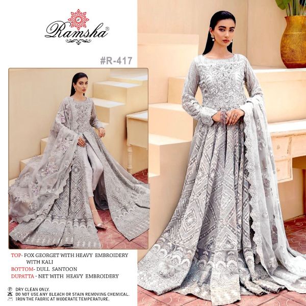 Ramsha Presents R-417 Fancy Fox Georgette Heavy Embroidery Work Beautiful Pakistani Suits Collection Wholesale Rate