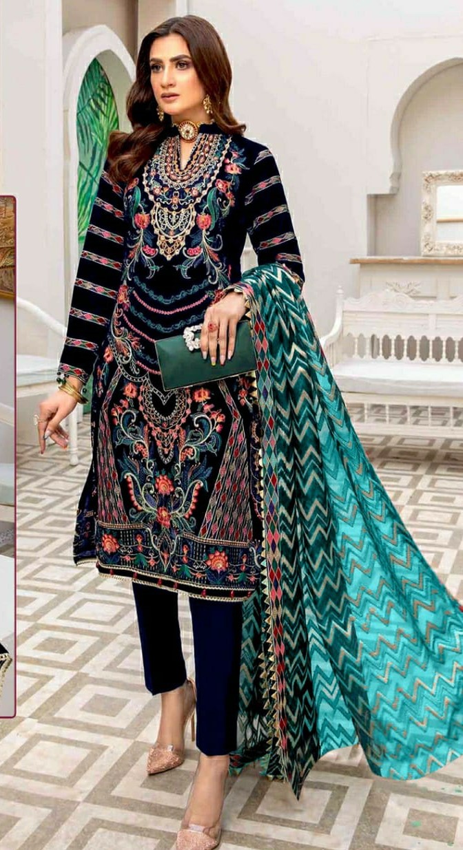 Latest Designer pakistani suit Collection. Exclusive with Foil & Thread Embroidery Work gives a Fashionable Look, High sensed style and luxury makes you ready for envious glazes and very rich & Royal in the Party, Function, Event etc.