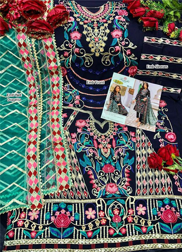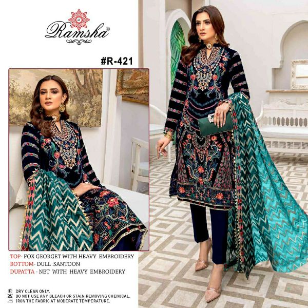 Ramsha Presents R-421 Pure Georgette With Heavy Embroidery Work Fancy Pakistani Suits Collection #1385