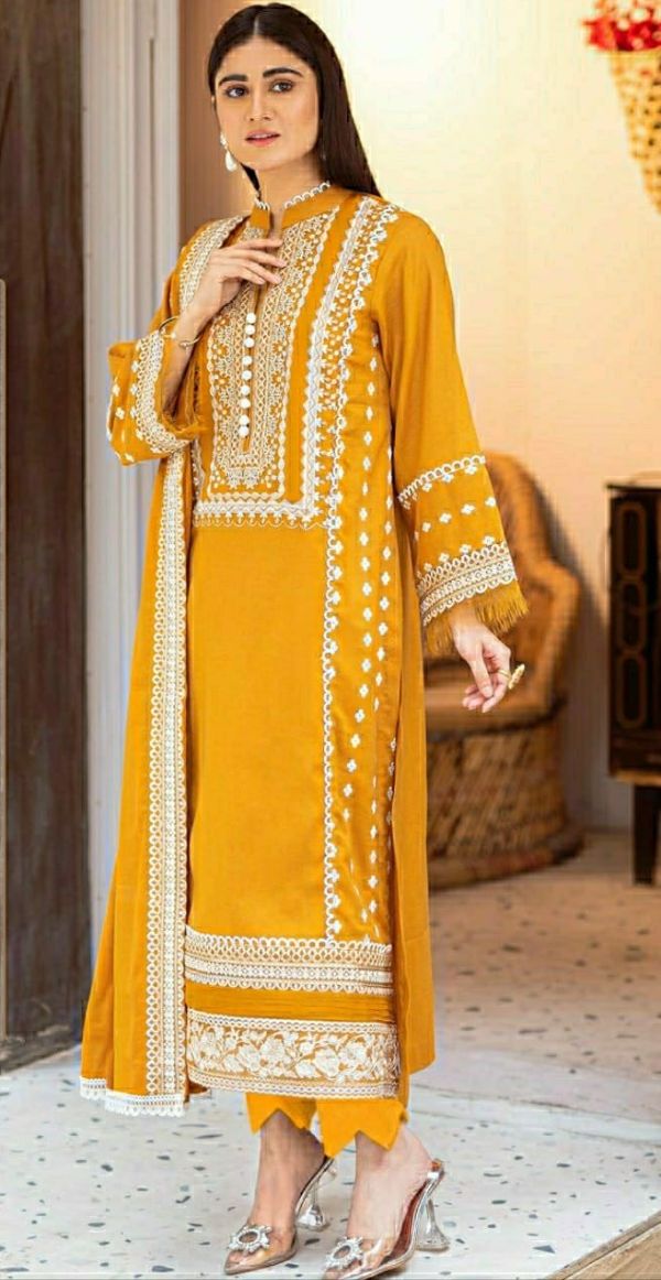 Latest Designer pakistani suits Collection. Exclusive with Foil & Thread Embroidery Work gives a Fashionable Look, High sensed style and luxury makes you ready for envious glazes and very rich & Royal in the Party, Function, Event etc.