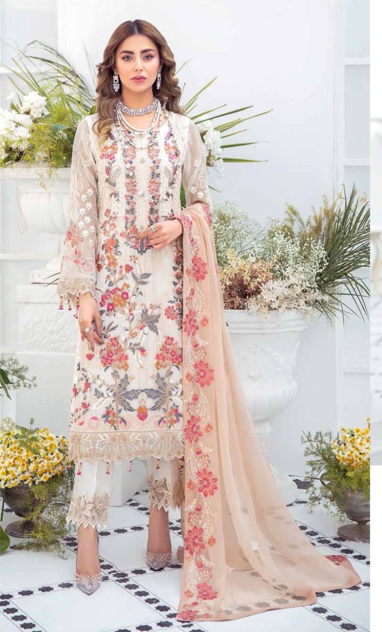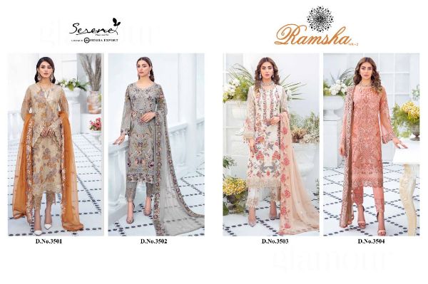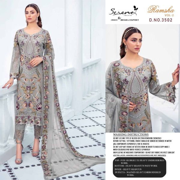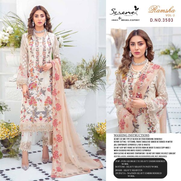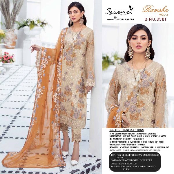 Ramsha Presents Serene Vol 1 Dn-3501,3502,3503,3504 Series Fox Georgette With Heavy Embroidery Work Pakistani Collection#2005