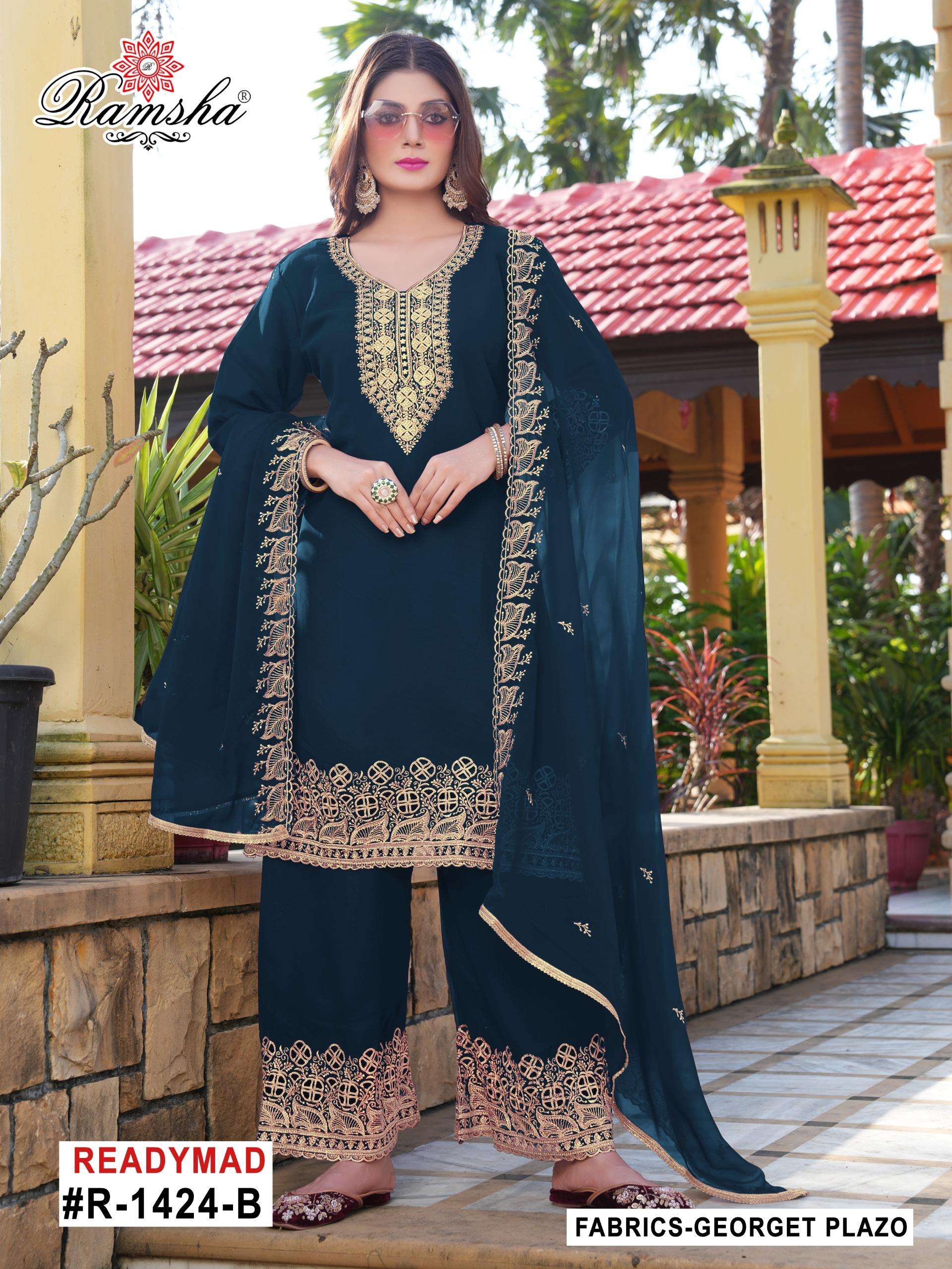 | Catalogue: | RAMSHA R 1424 Ready To Wear Embroidery Pakistani Georgette Suit |